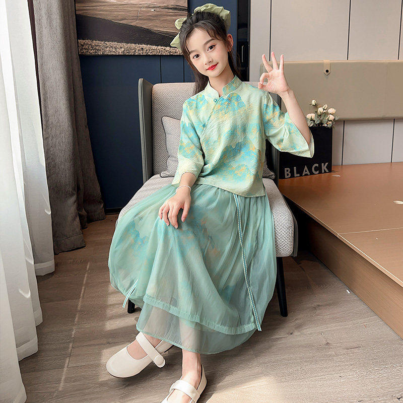 --------------------- NEXT JANSO女童中国风汉服套装夏季复古立领上衣阔腿裤两件套洋气 【原售价】328元 【现售价】288元 【推荐理由】