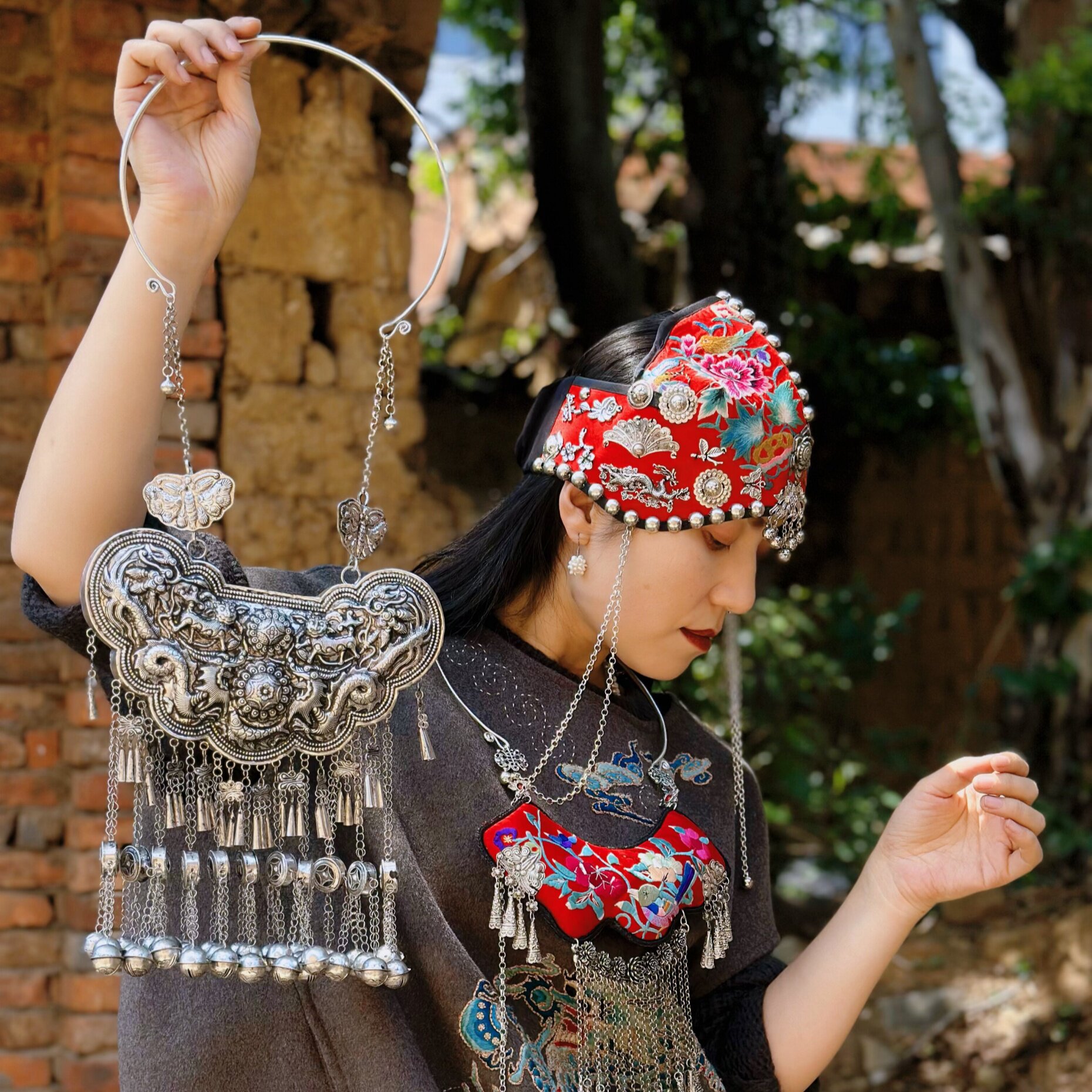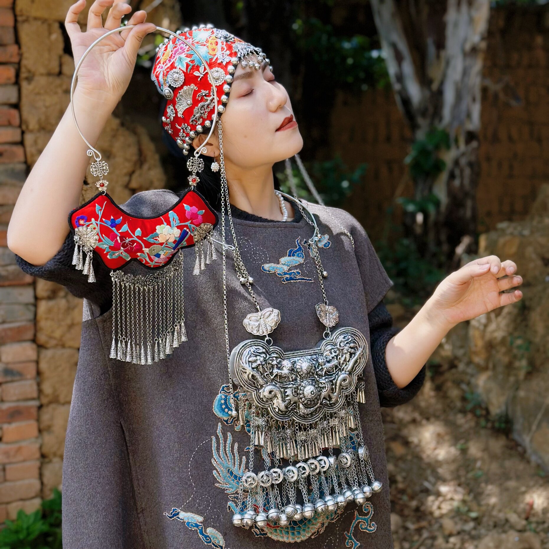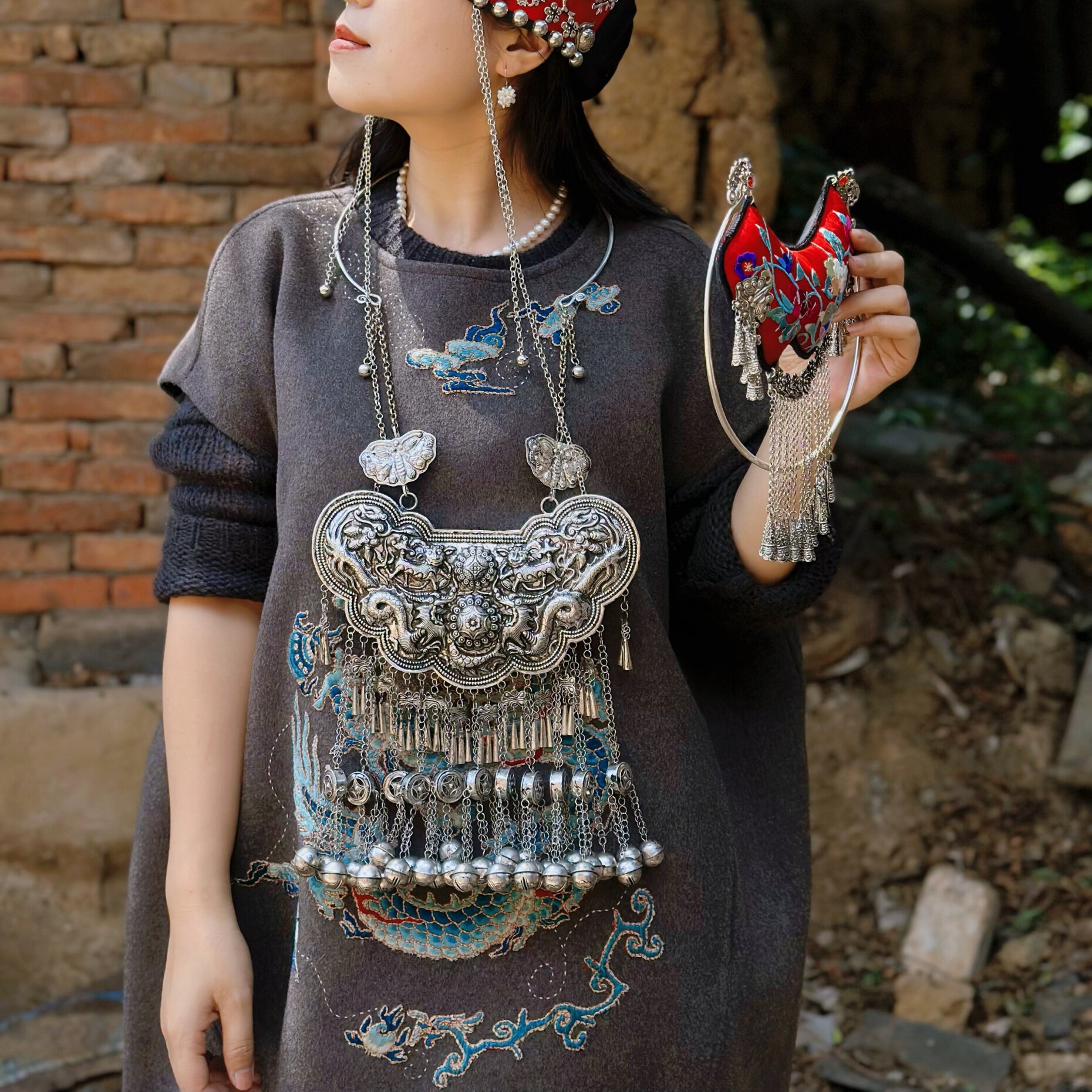 【戴一世温柔】新中式民族风苗银项圈 双层流苏做旧苗银项链