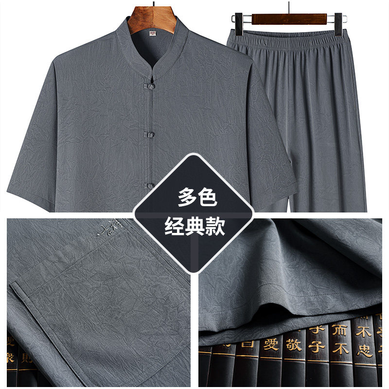 --------------------- 罗蒙中老年人唐装男夏季爸爸两件套装爷爷国潮新中式透气薄款短袖 【原售价】239元 【现售价】210元 【推荐理由】