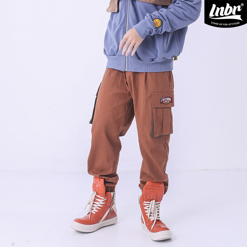 LNBR工装裤男国潮多口袋机能裤个性潮流美式街头宽松宽松束脚大码
