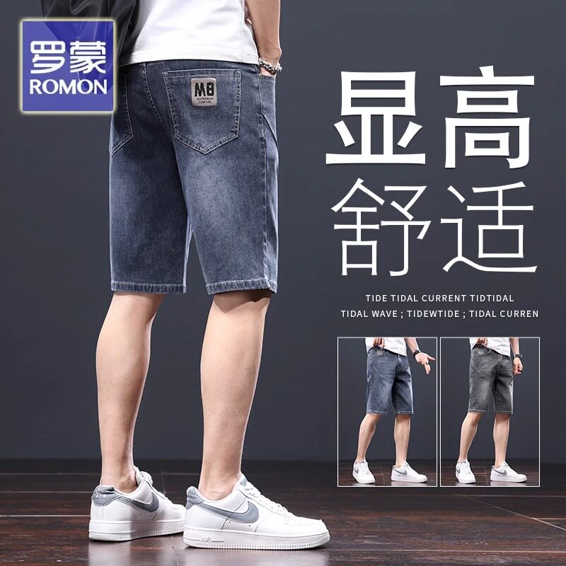 罗蒙牛仔裤短裤男夏季薄款宽松直筒五分裤休闲中裤2026新款马裤子