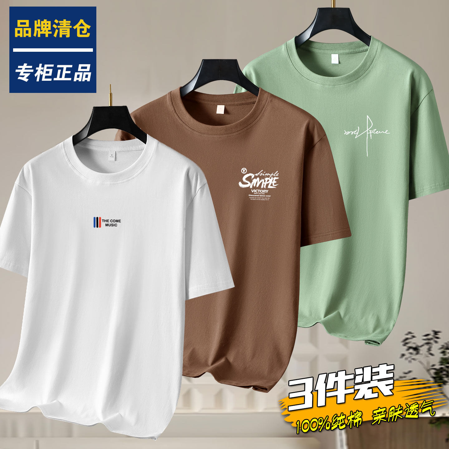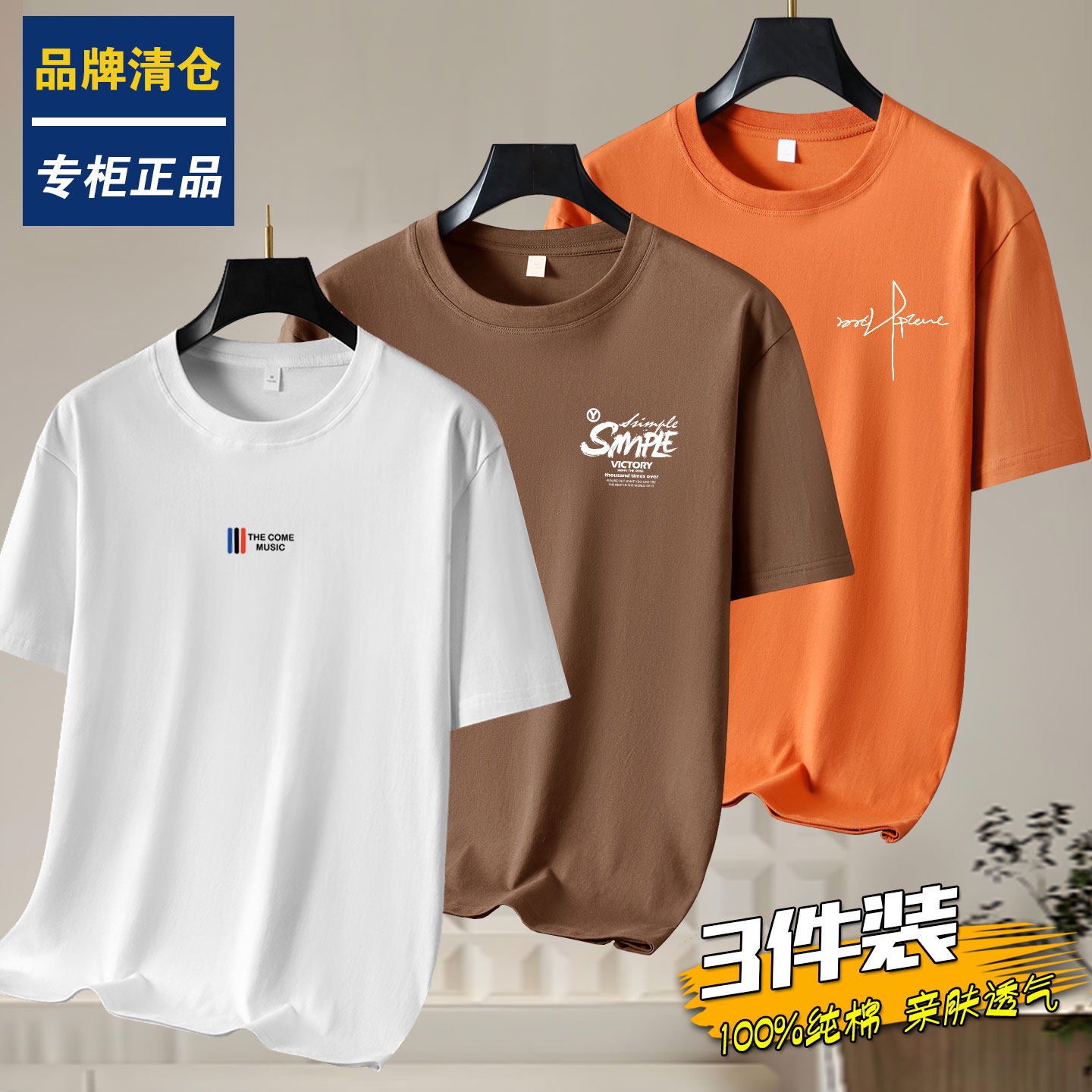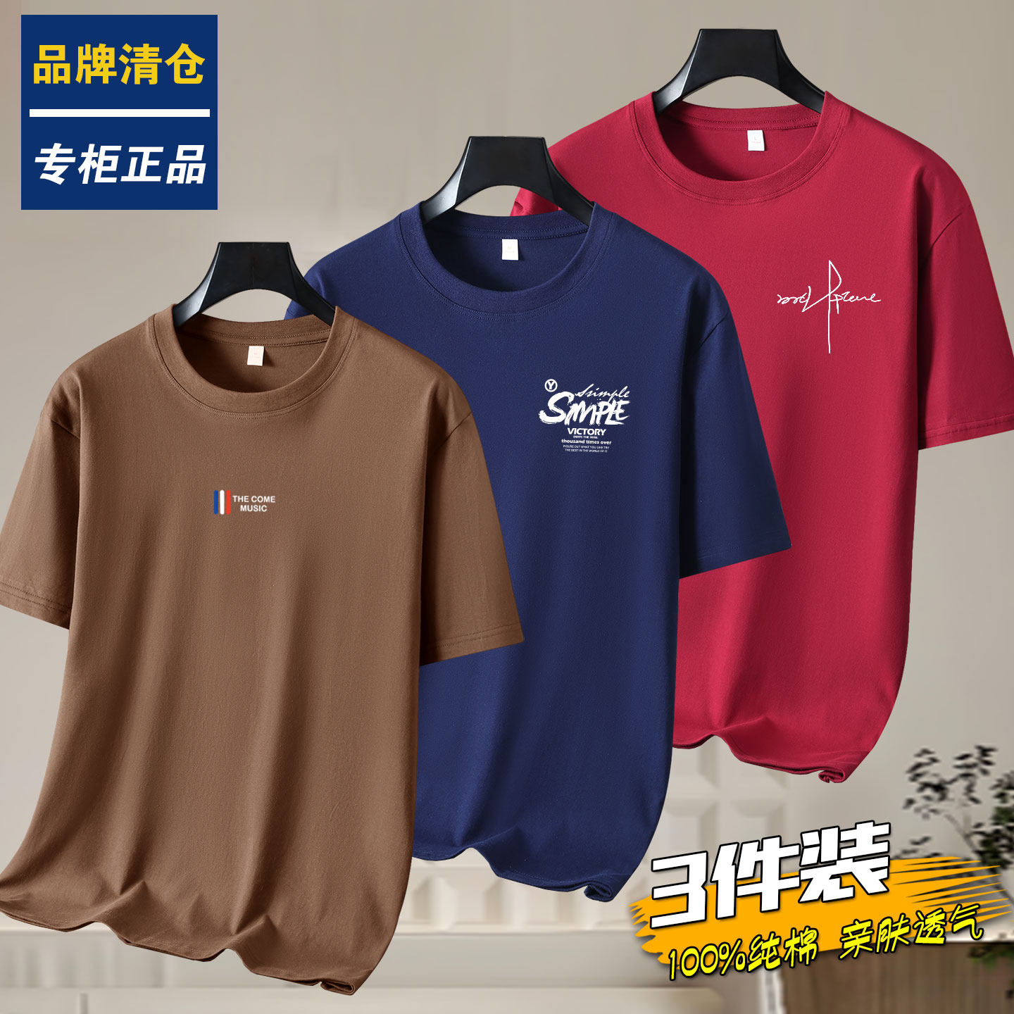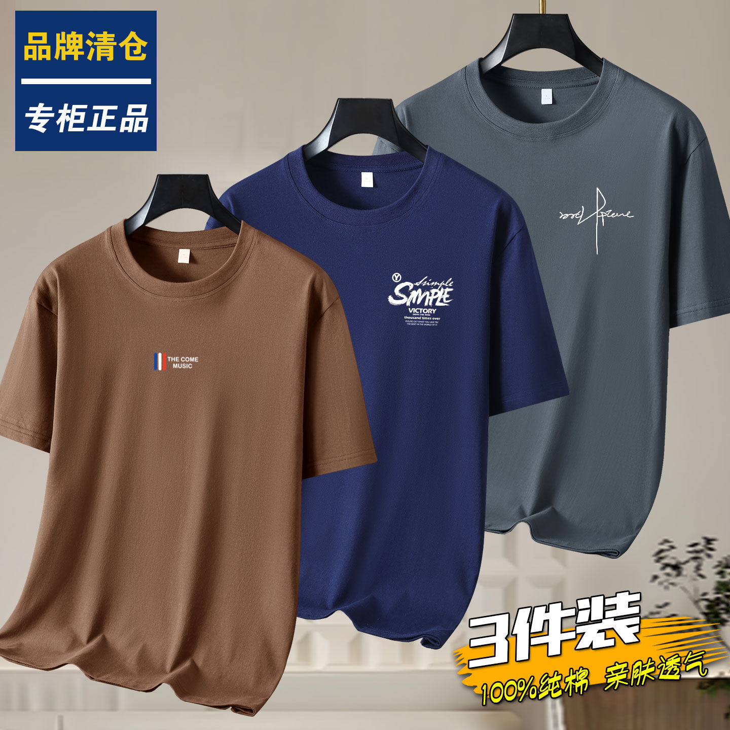 淘宝海蓝品牌短袖t恤男纯棉夏季薄款圆领全棉体恤宽松半袖上衣打底衫
