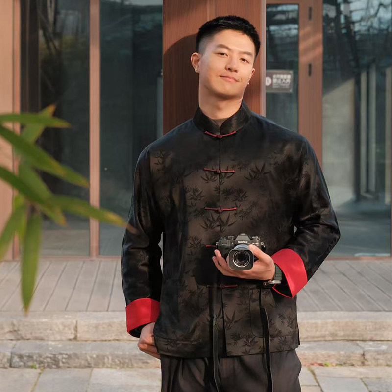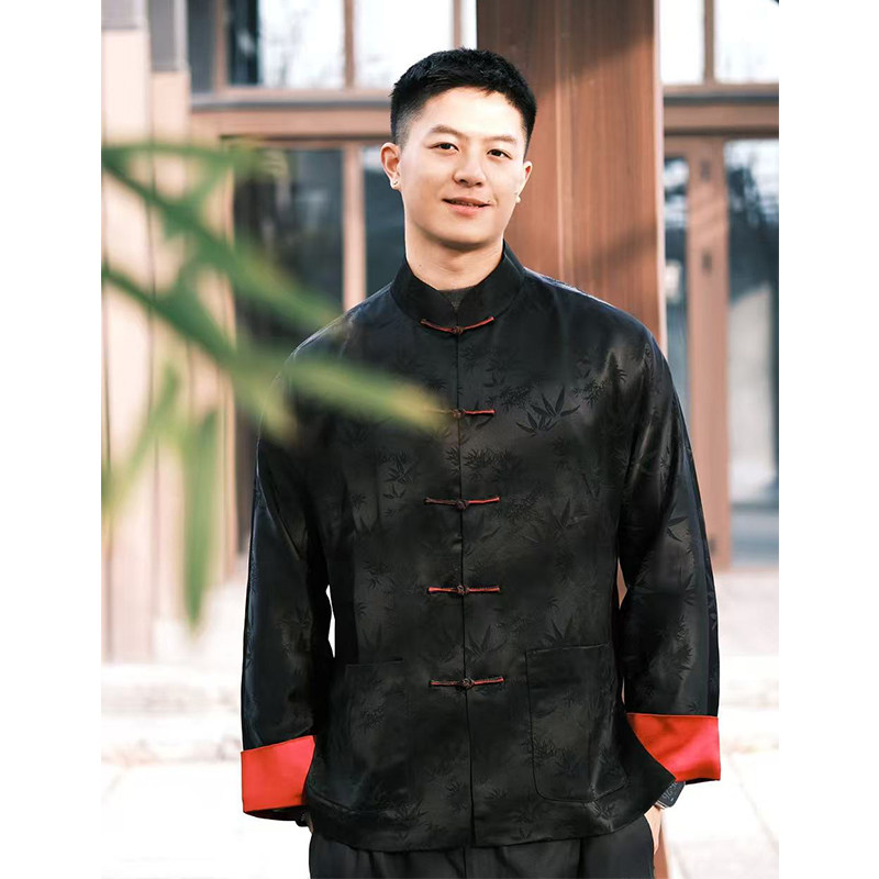 华韵三重门秋季中式国风醋酸唐装外套男装提花上衣立领夹克高档款