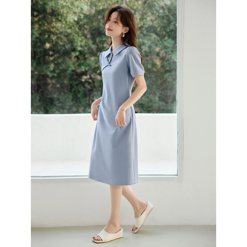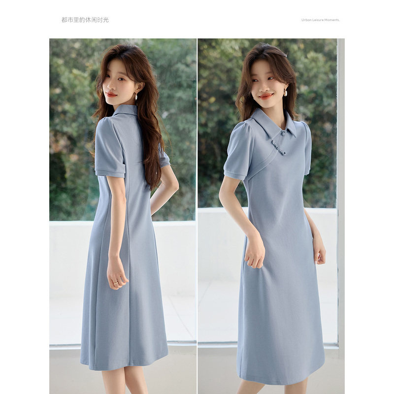 沫晗依美休闲POLO盘扣收腰连衣裙26春夏新款新中式时尚显瘦连衣裙