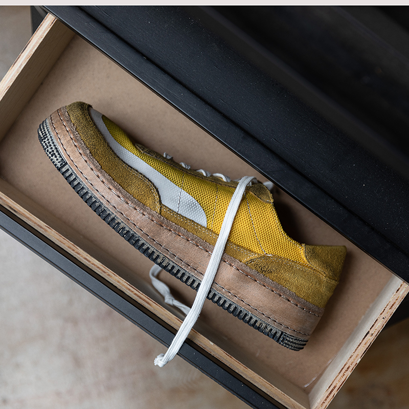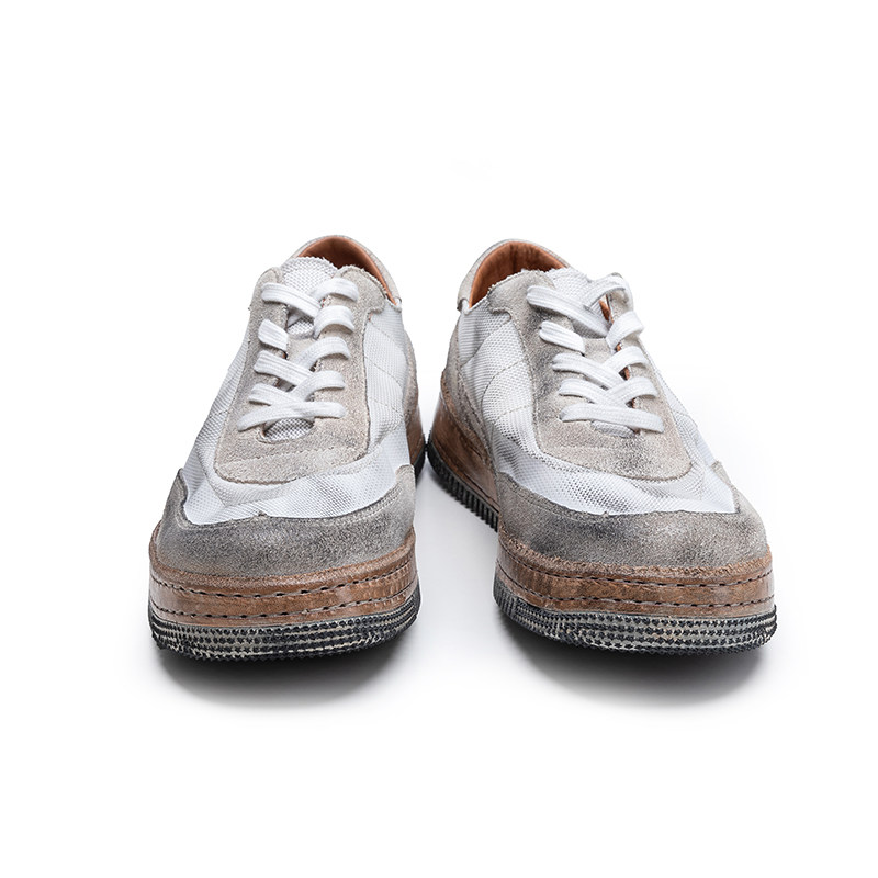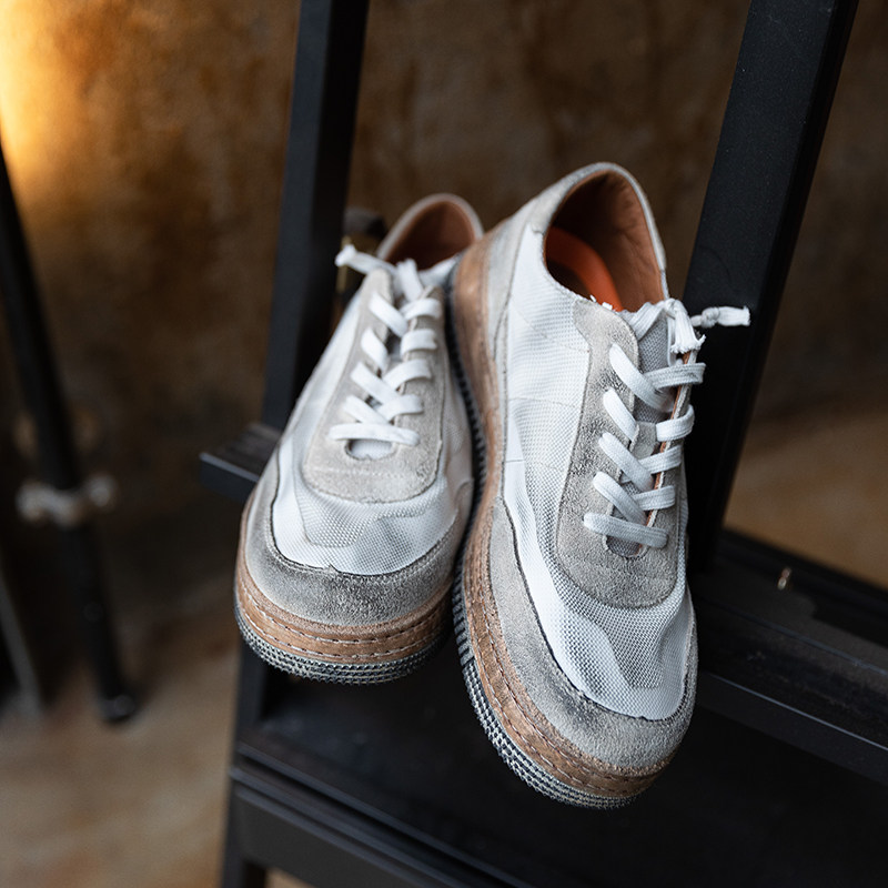 周莹国潮拼色脏脏废土风休闲手工缝制男鞋厚底增高小众复古板鞋