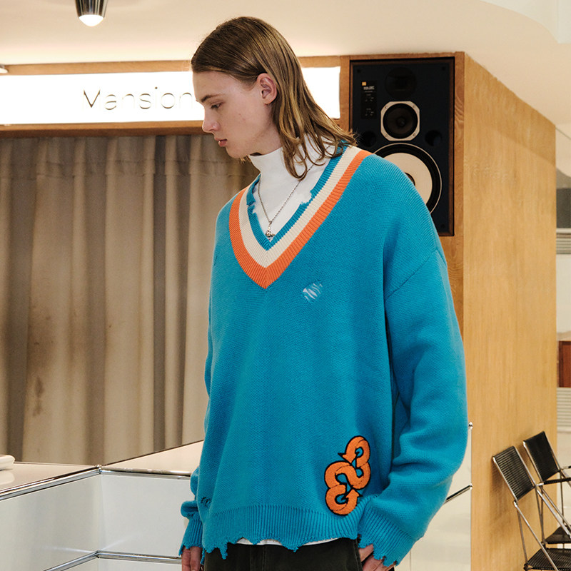 --------------------- 33TRENTETROIS潮牌秋季长袖针织衫宽松学院风百搭休闲V领针织衫 【原售价】798元 【现售价】351元 【推荐理由】