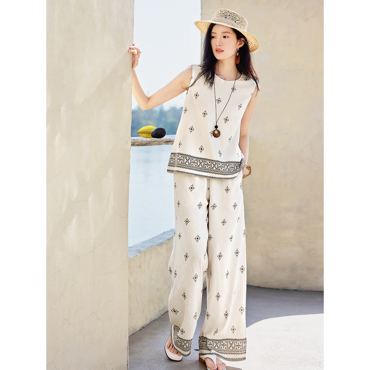 XWI欣未波西米亚无袖印花套装女2026年夏季出游度假风穿搭一整套