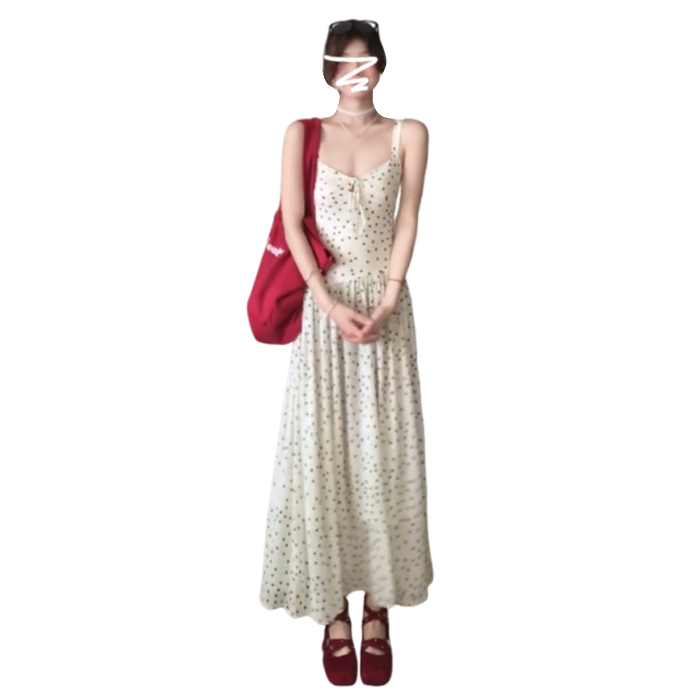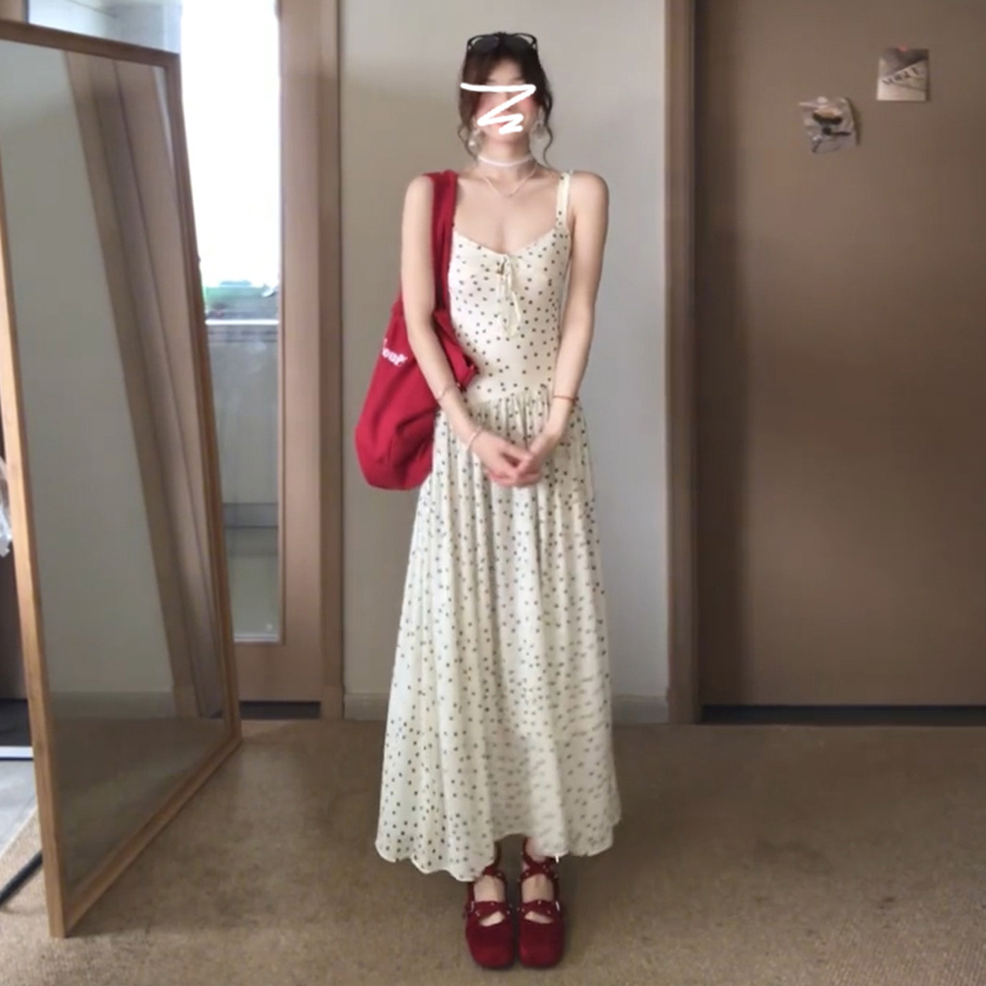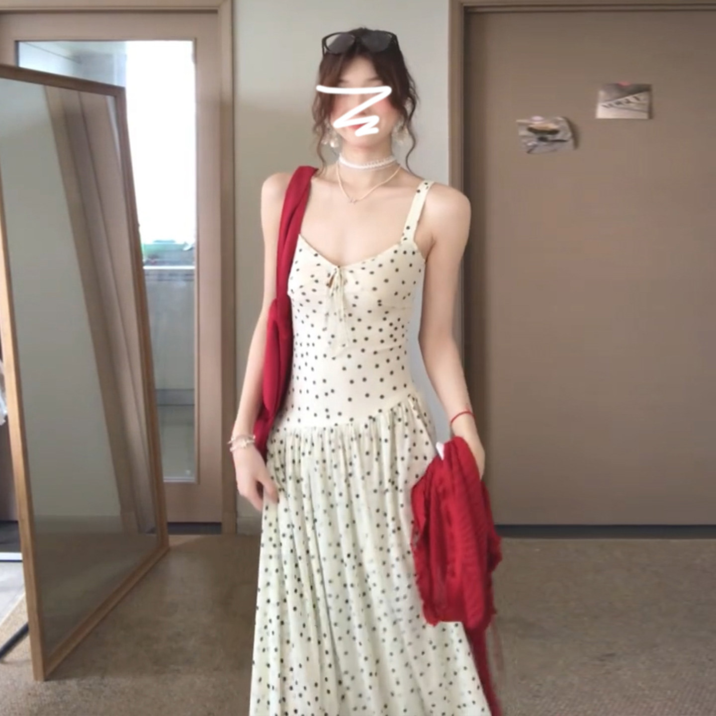 韩系温柔白色连衣裙子女2026新款夏季高级感海边度假风波点吊带裙