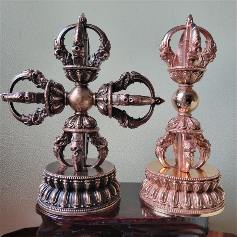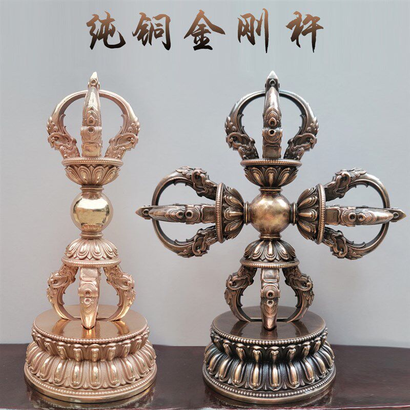 --------------------- 尼泊尔工艺纯铜五股金刚杵十字降魔杵带底座大号紫铜精工供奉摆件 --------------------- --------------------- 【原价】501元 【券后价】415元