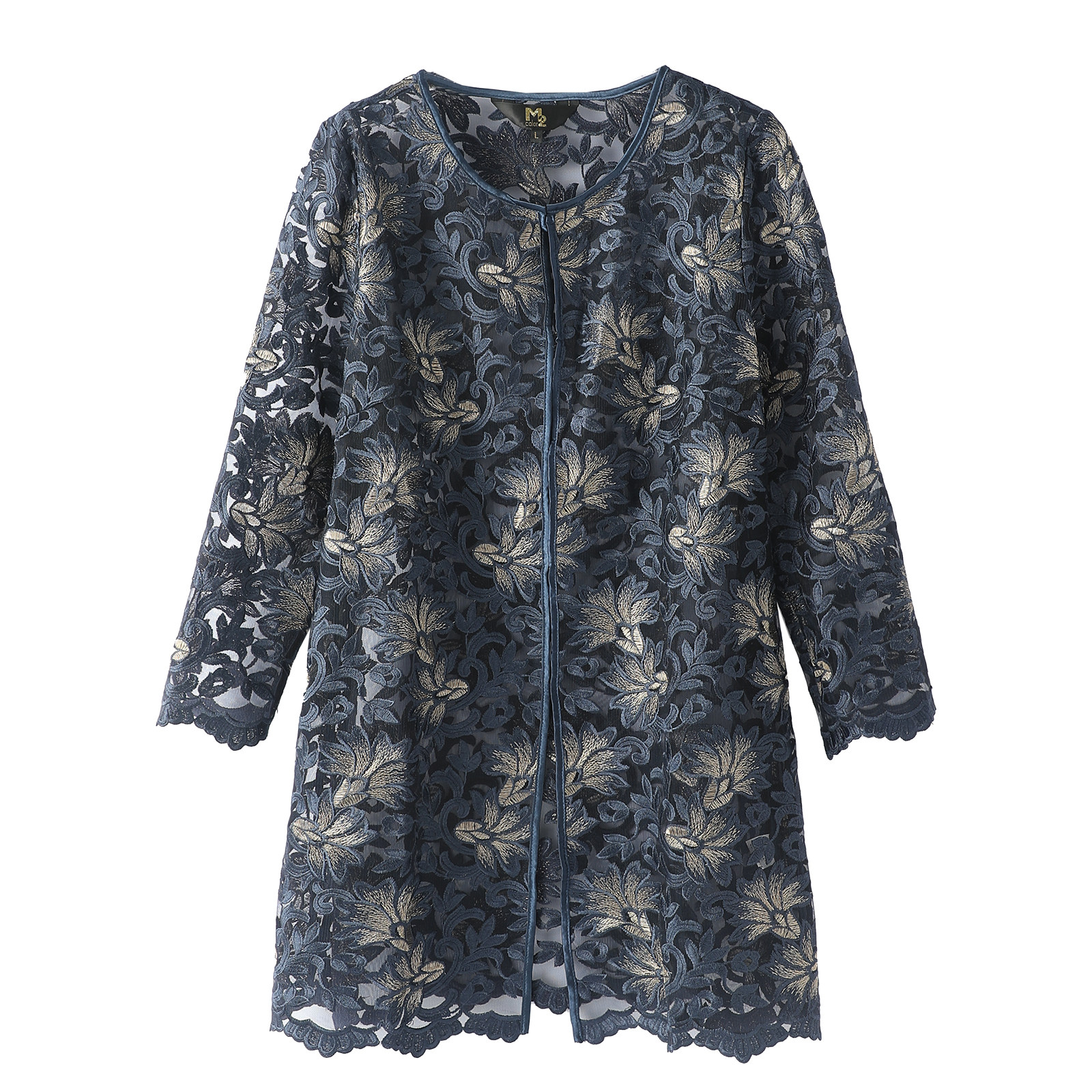 --------------------- M2折扣店春夏复古网纱长袖开衫女装圆领花边雪纺上衣 【原售价】78元 【现售价】68.6元 【推荐理由】