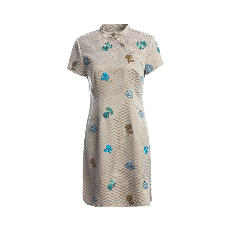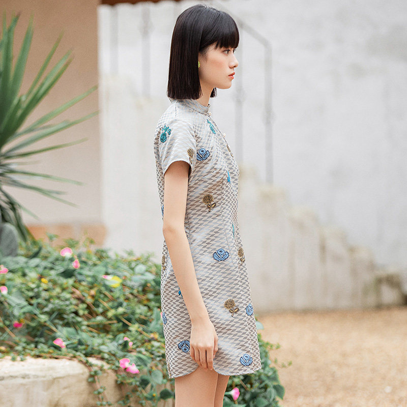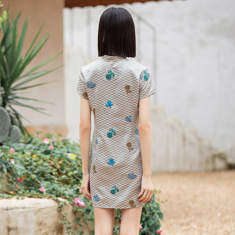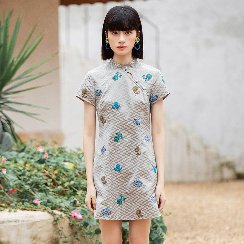 非鱼春季新款国潮女装刺绣连衣裙修身显瘦改良旗袍款短裙