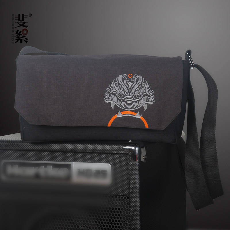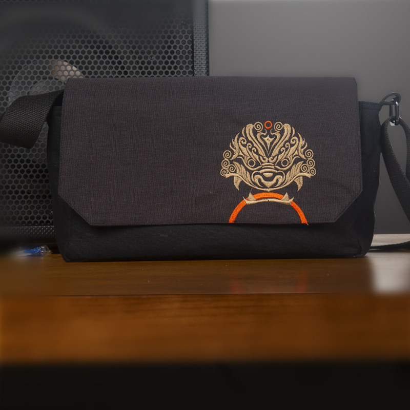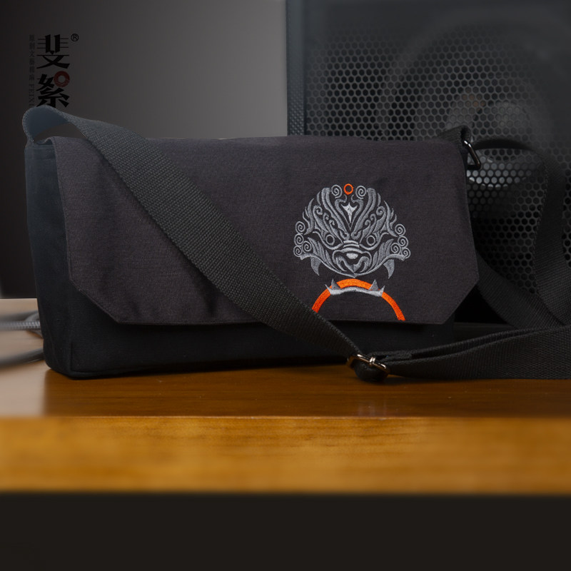 斐絮刺绣包包2024新款狻猊刺绣多功能机车包男士小包