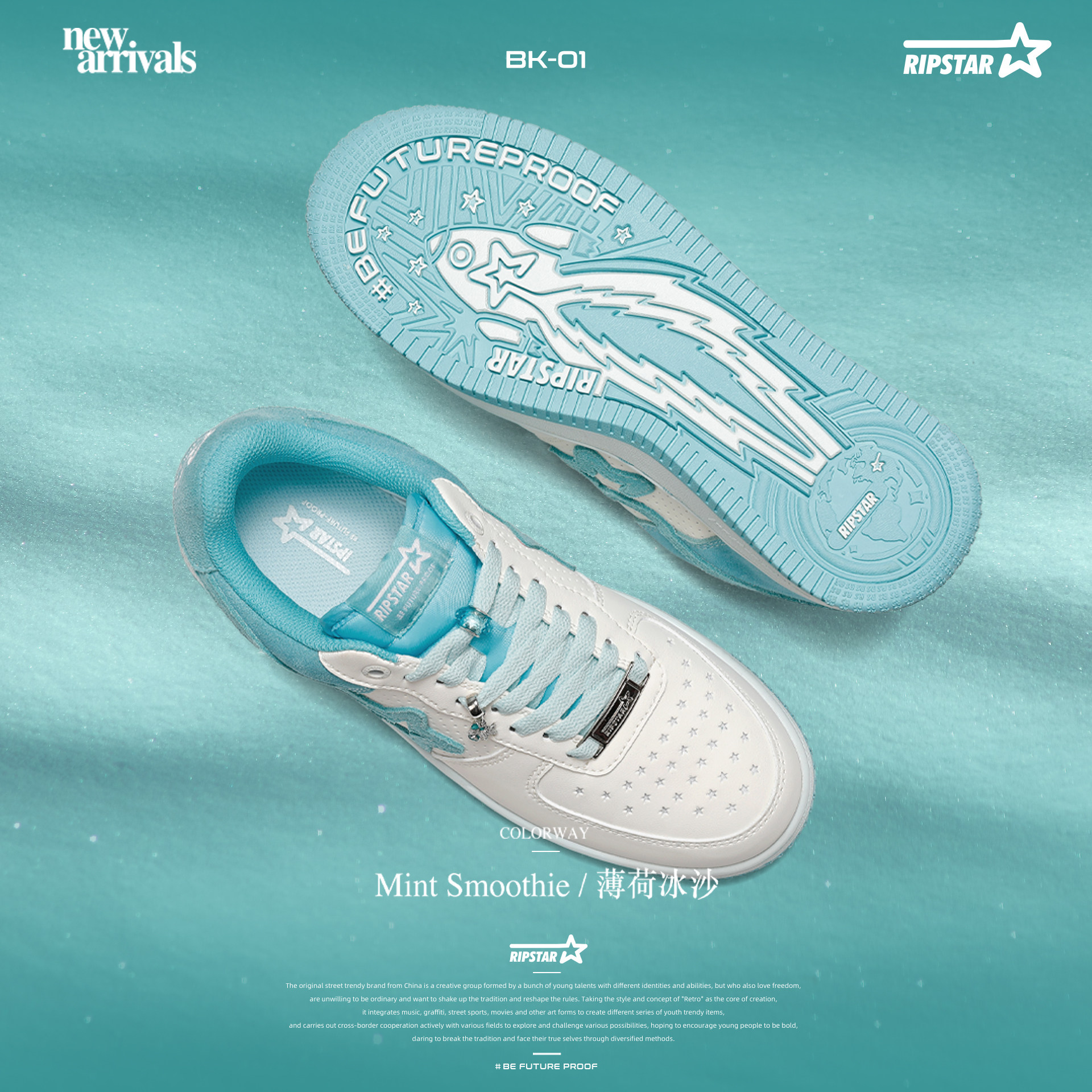 --------------------- RIPSTAR/爆炸星蓝色休闲板鞋春夏季男女款潮流运动鞋【薄荷冰沙】 【原售价】629元 【现售价】389元 【推荐理由】
