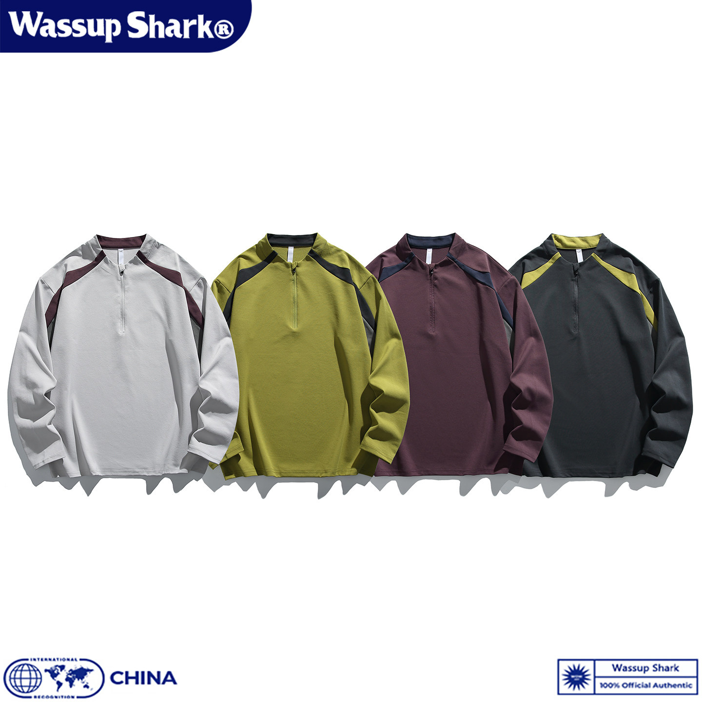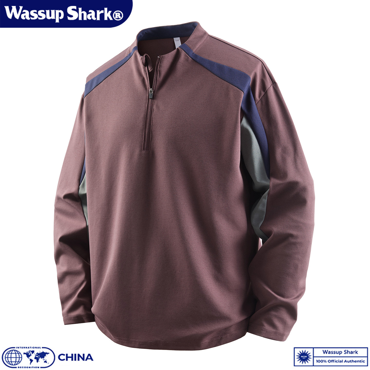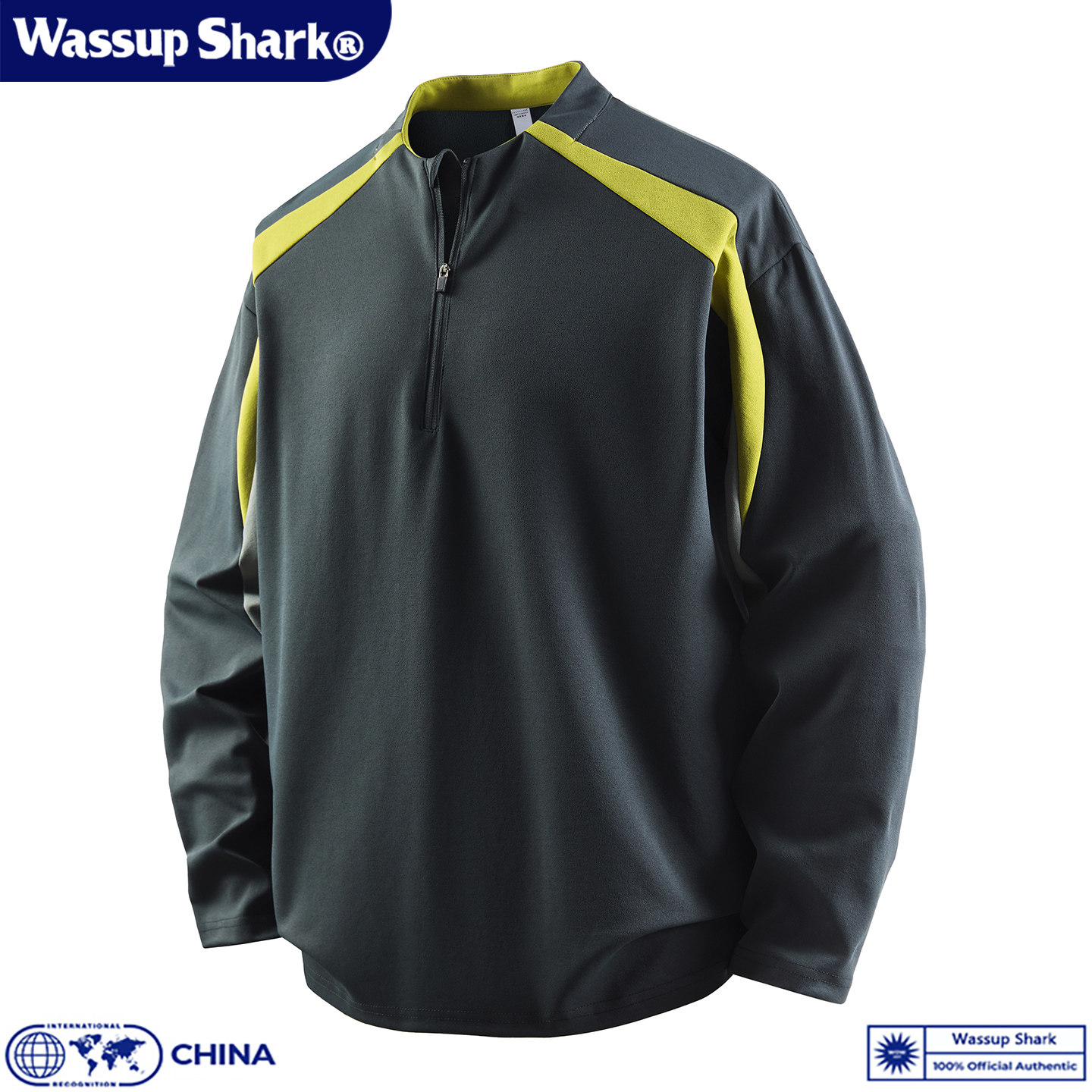 Wassup Shark拼色半拉链运动长袖T恤男户外时尚吸湿速干功能上衣