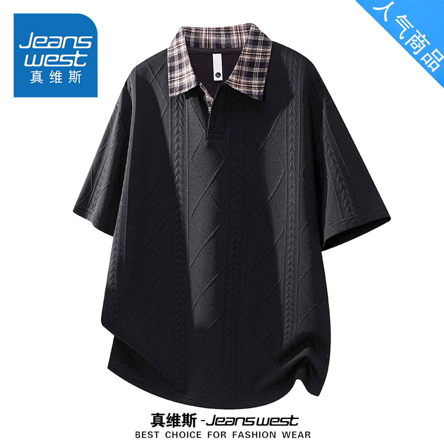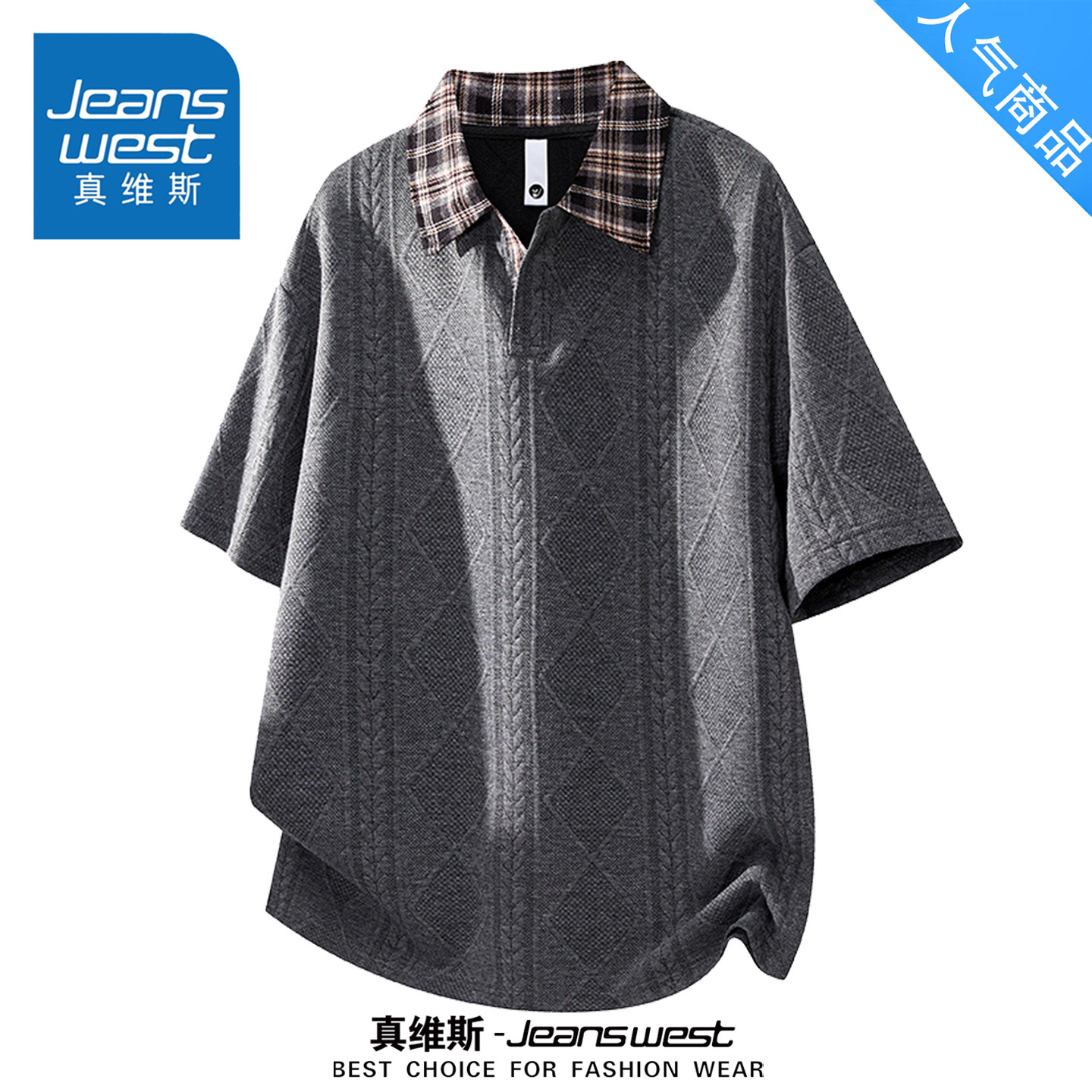 --------------------- 真维斯假两件格子拼接翻领短袖男款2026夏季新款宽松休闲五分袖 【原售价】199元 【现售价】79.9元 【推荐理由】