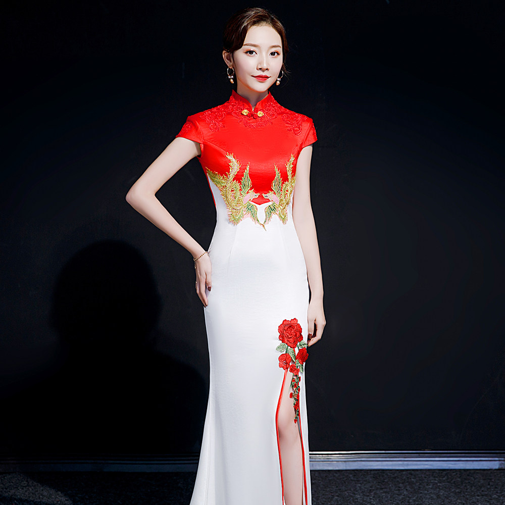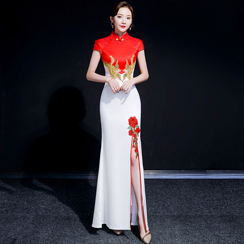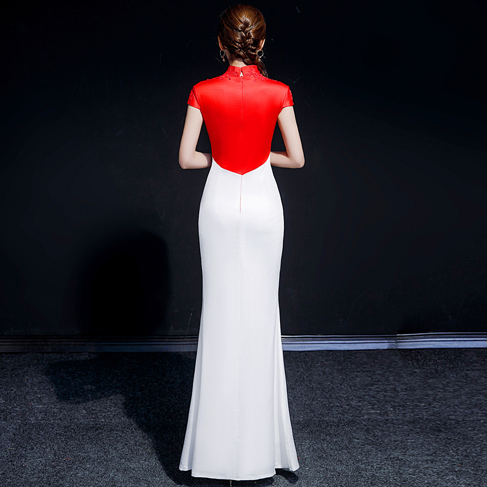 --------------------- 紫缘萱晚礼服女模特走秀旗袍团体演出服长款开叉年会国潮鱼尾裙夏 【原售价】418元 【现售价】318元 【推荐理由】