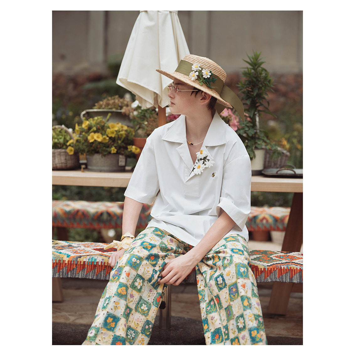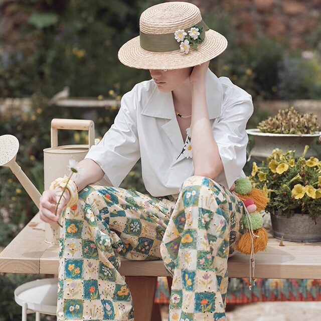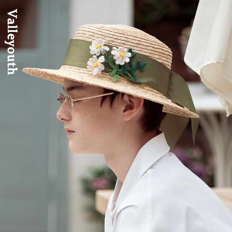 洋甘菊 手工立体钩编度假文艺遮阳平顶草帽 山谷少年设计师品牌