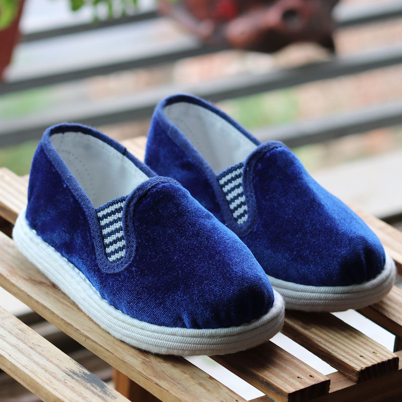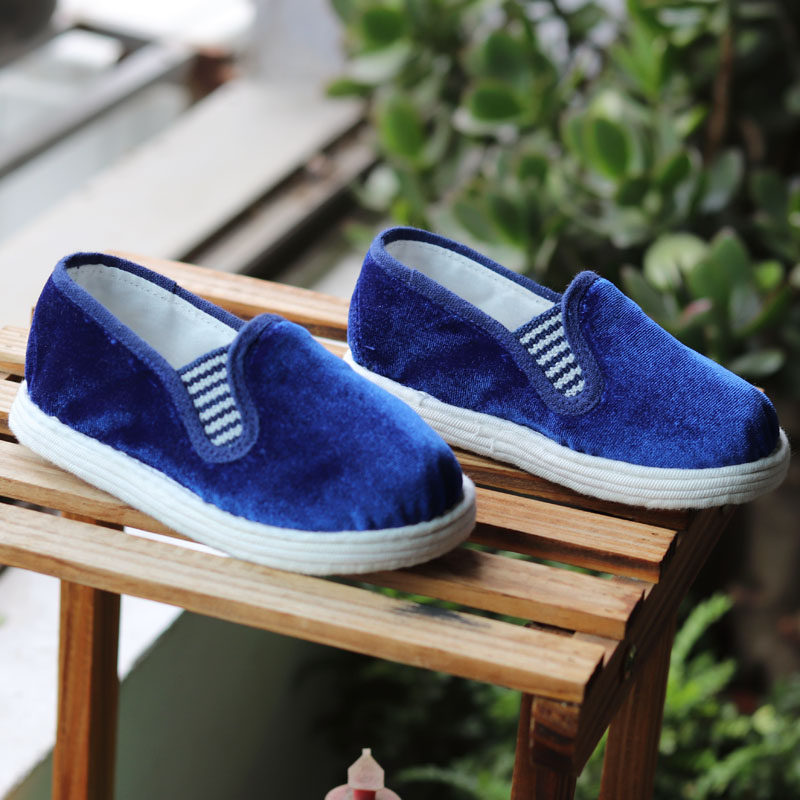 --------------------- 原创纯手工千层底儿童布鞋深蓝金丝绒一脚蹬传统男女童鞋透气吸汗 【原售价】60元 【现售价】52.8元 【推荐理由】