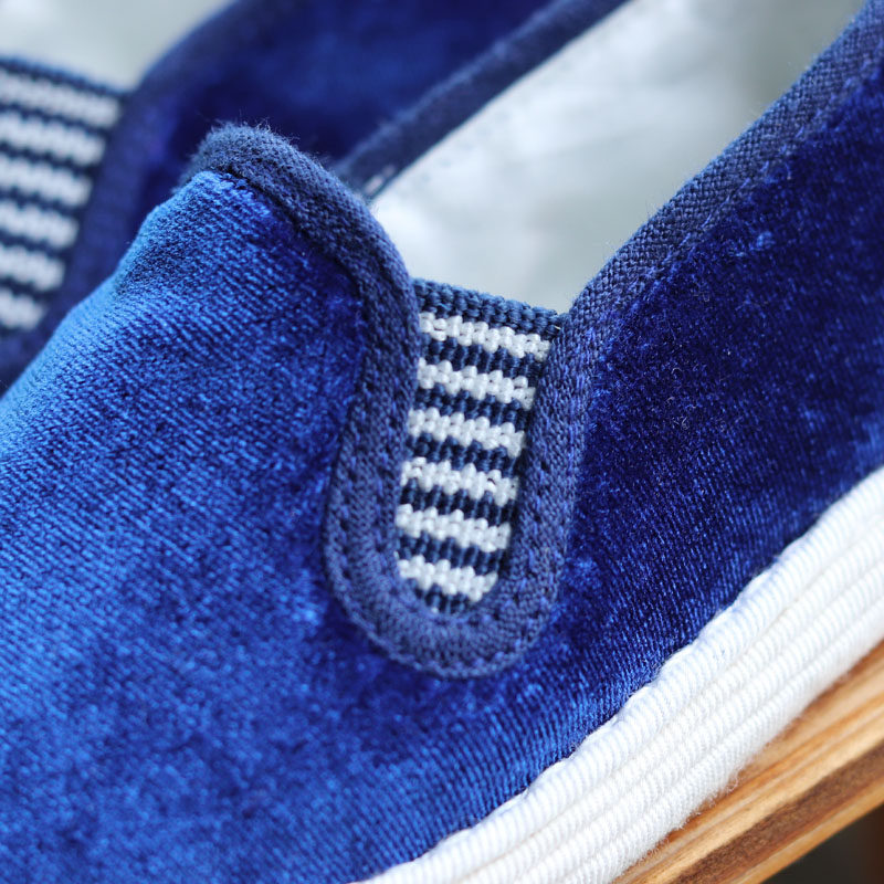 原创纯手工千层底儿童布鞋深蓝金丝绒一脚蹬传统男女童鞋透气吸汗