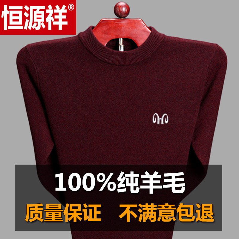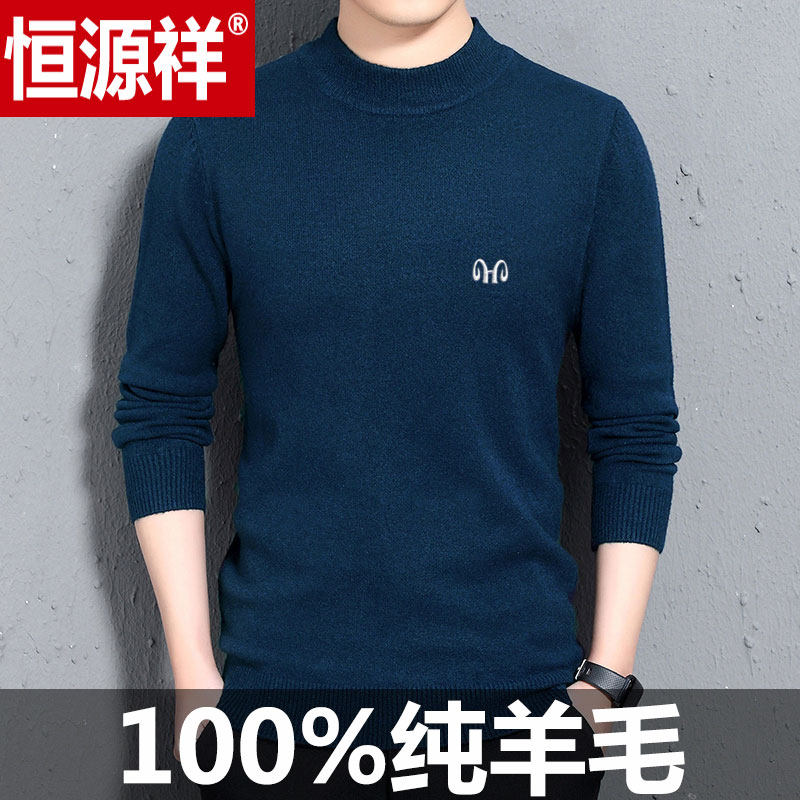 100%羊毛衫男圆领恒源祥中年男士毛衣半高领羊绒衫打底毛线衣加厚