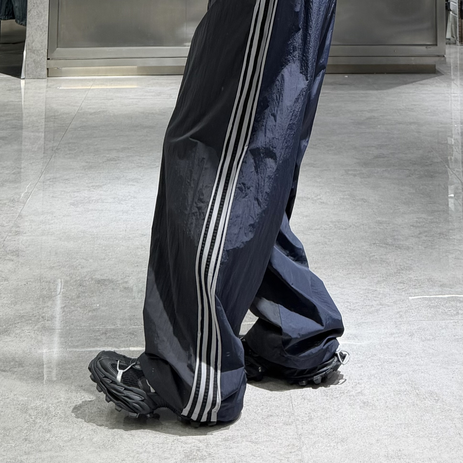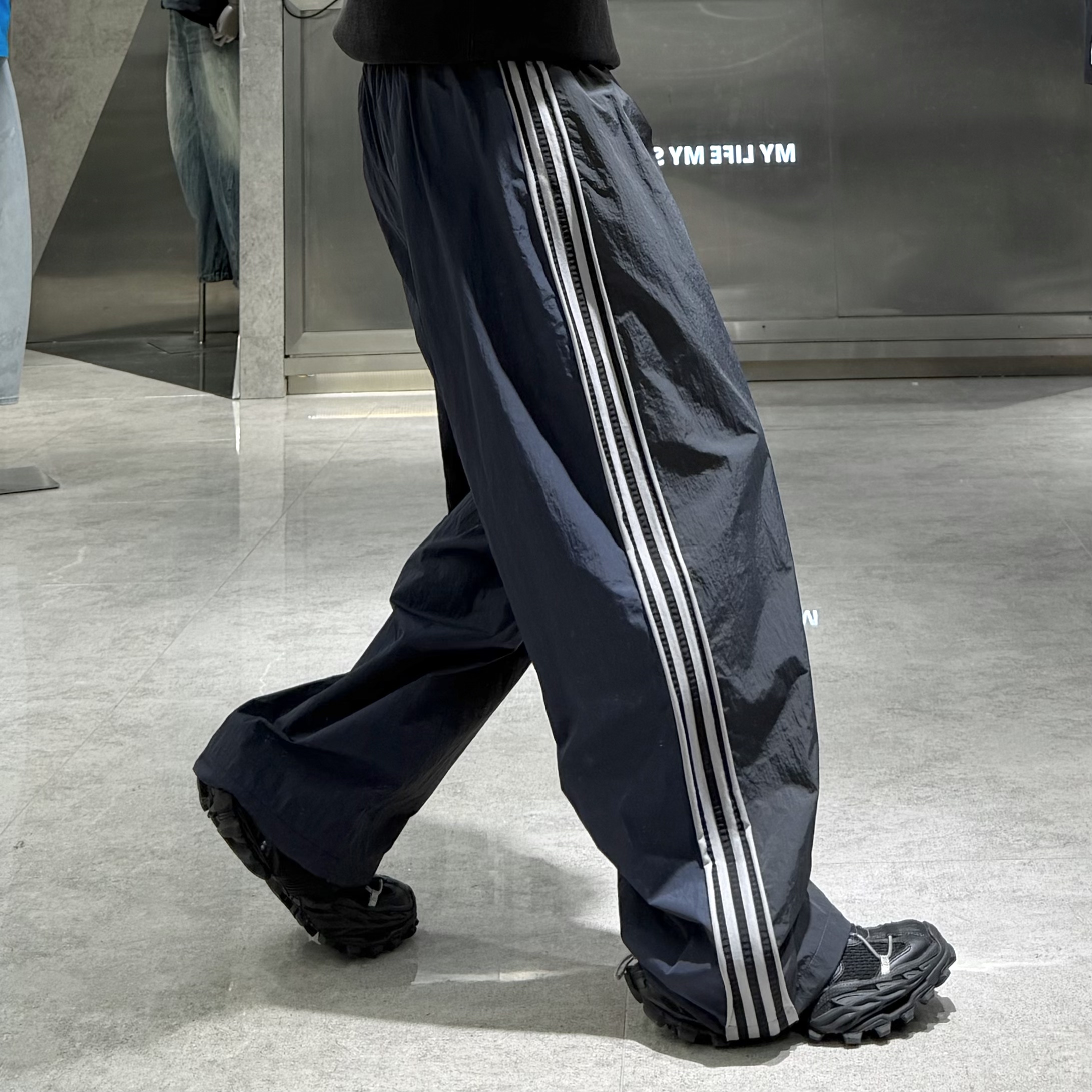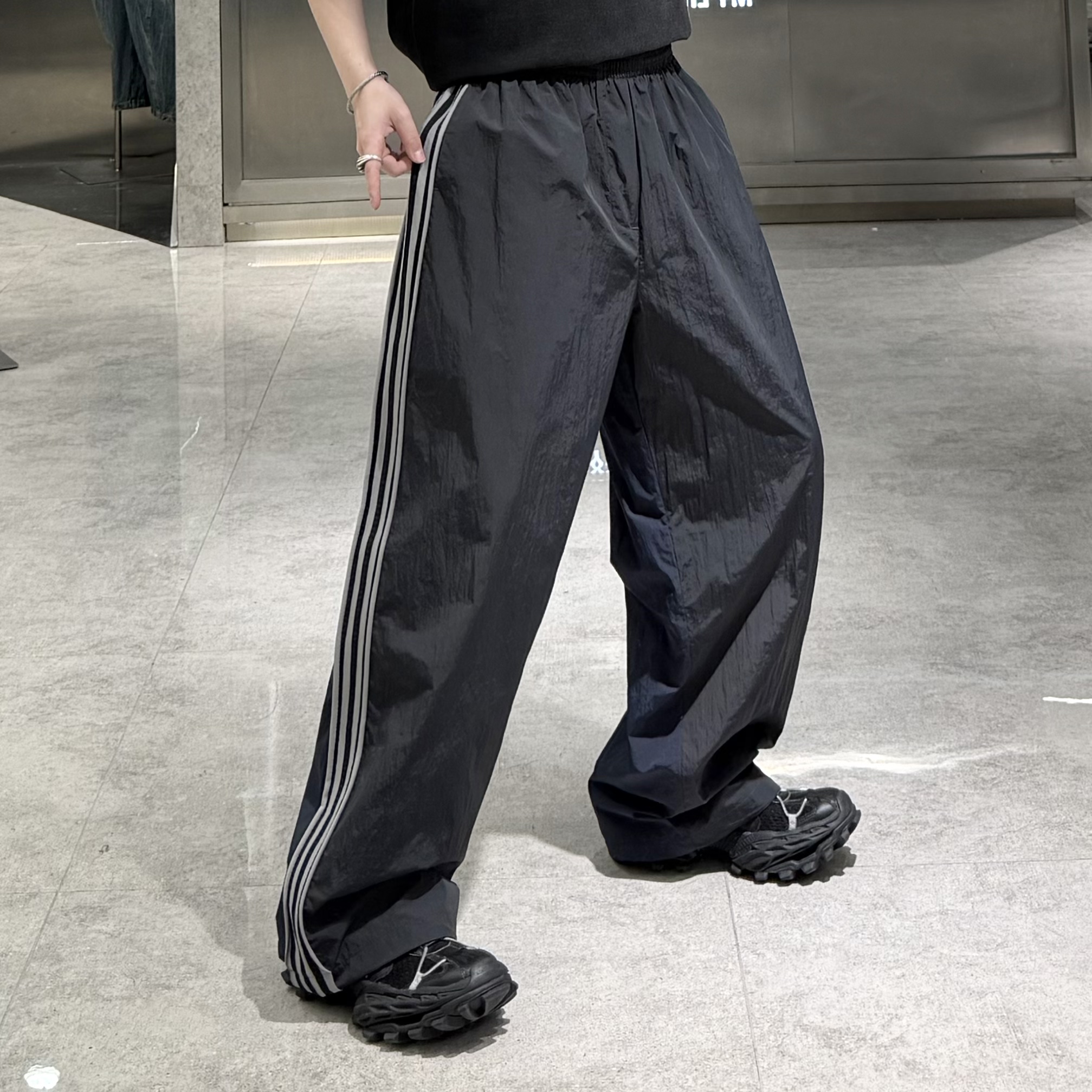 潮牌春季直筒运动休闲裤男国潮三条杠拼接撞色AB面宽松青年阔腿裤