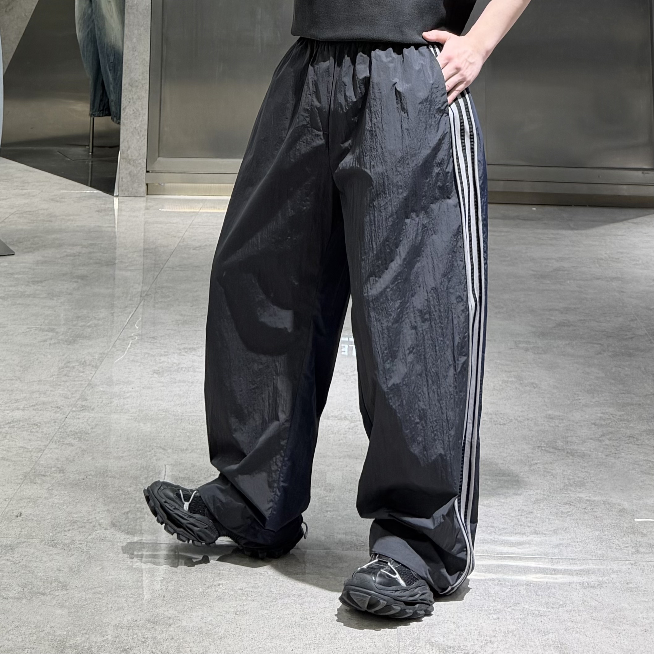 --------------------- 潮牌春季直筒运动休闲裤男国潮三条杠拼接撞色AB面宽松青年阔腿裤 【原售价】298元 【现售价】262元 【推荐理由】