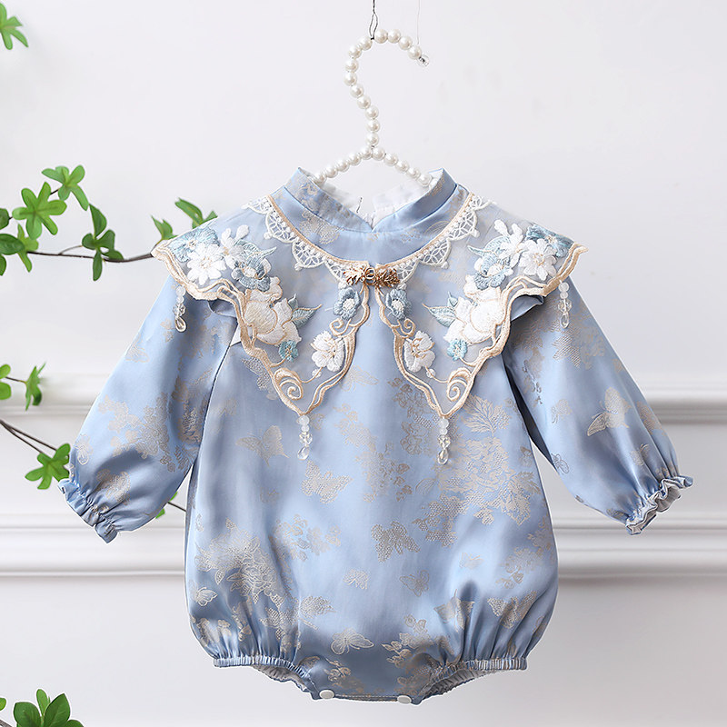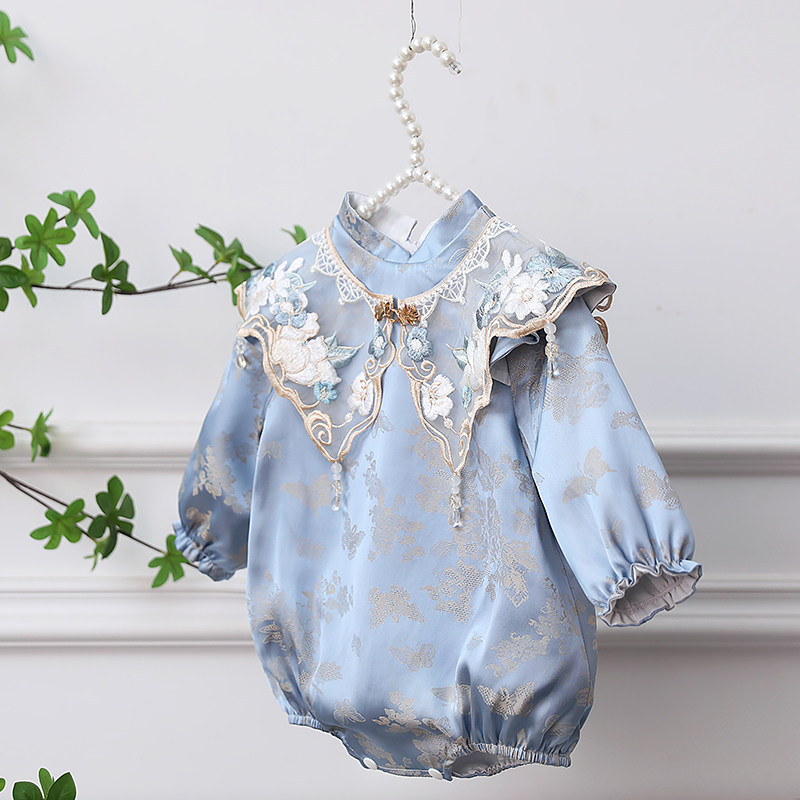 --------------------- 周岁女宝宝礼服旗袍冠衣蓝色中式满月婴儿抓周百日宴衣服长袖秋冬 【原售价】208元 【现售价】183元 【推荐理由】