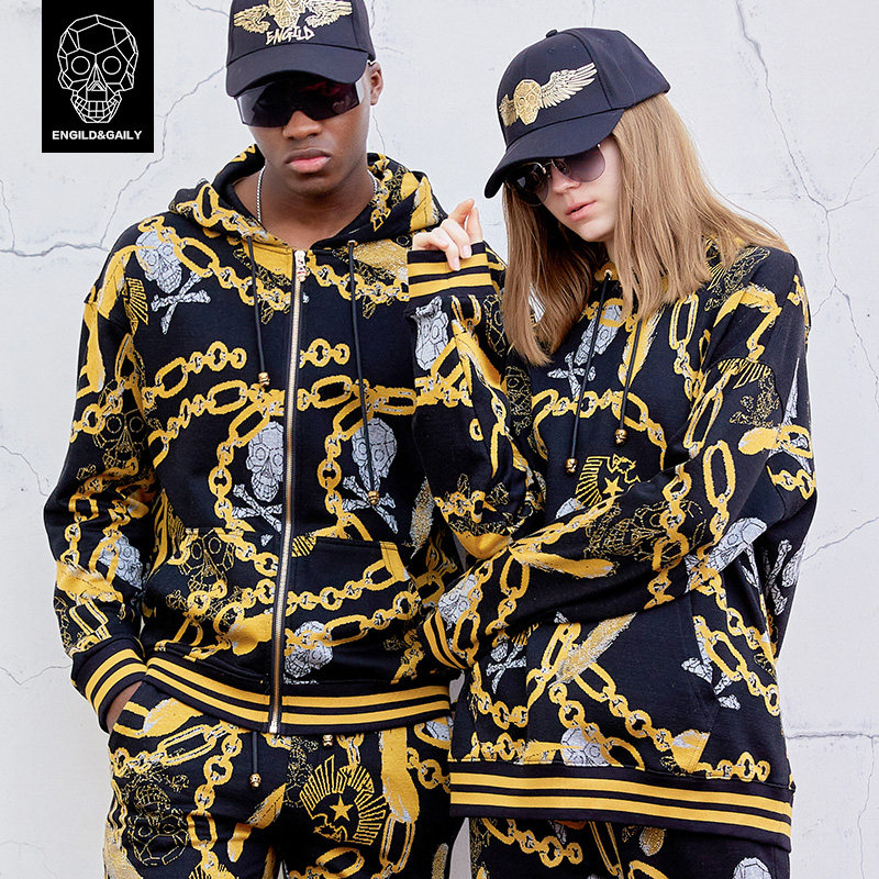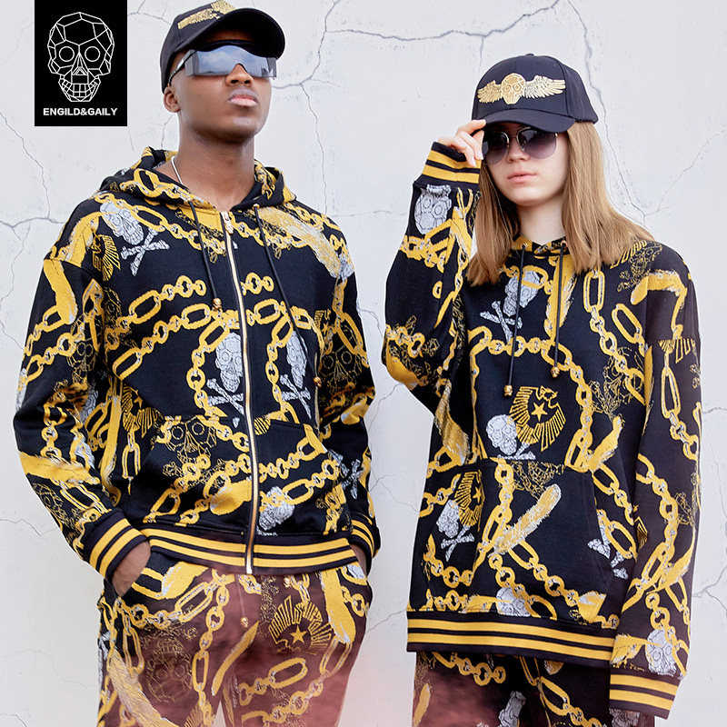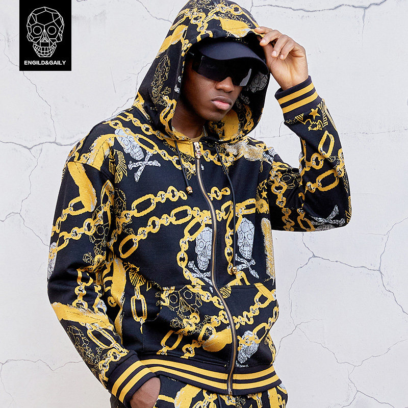 ENGILD&GAILY原创潮牌美式休闲印花锁链弹力潮流复古百搭外套上衣