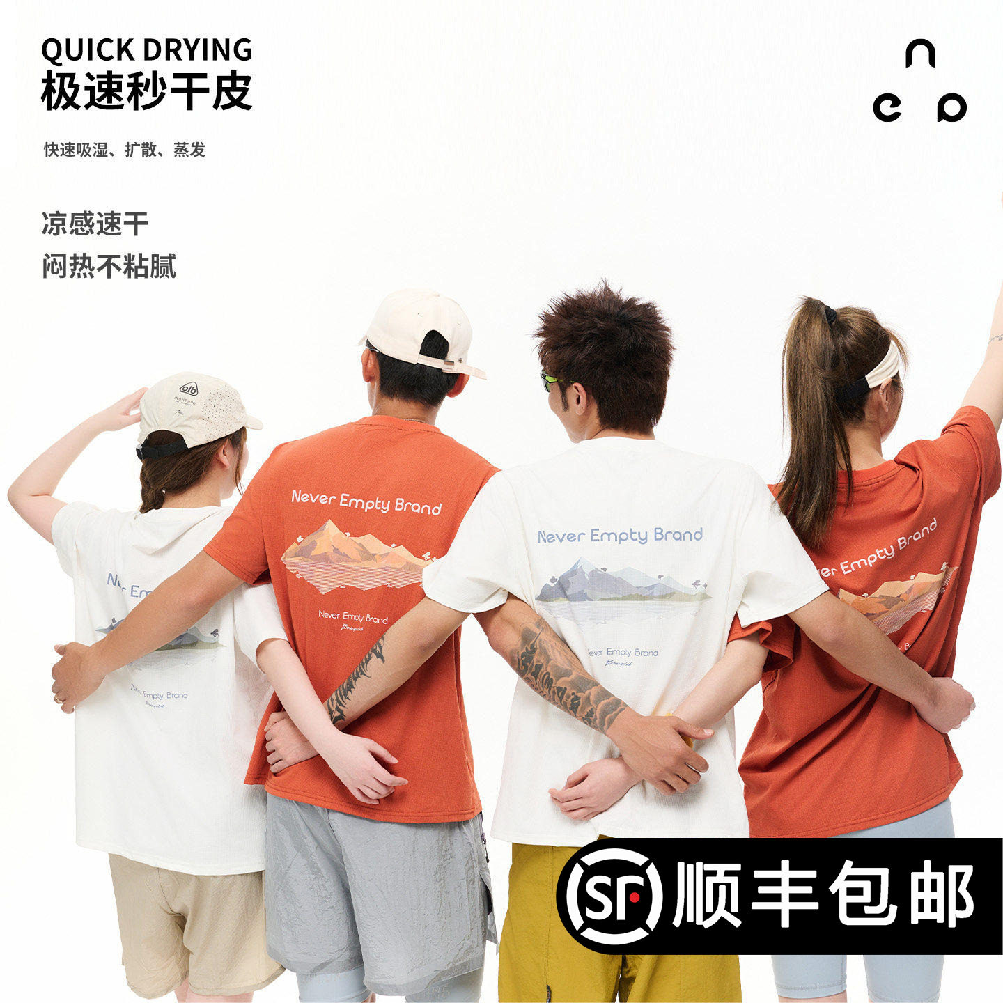 NEVER EMPTY速干运动短袖 国潮牌夏季圆领宽松情侣装休闲半袖T恤