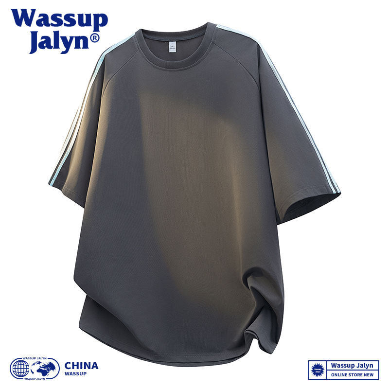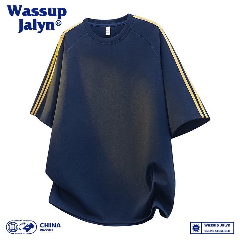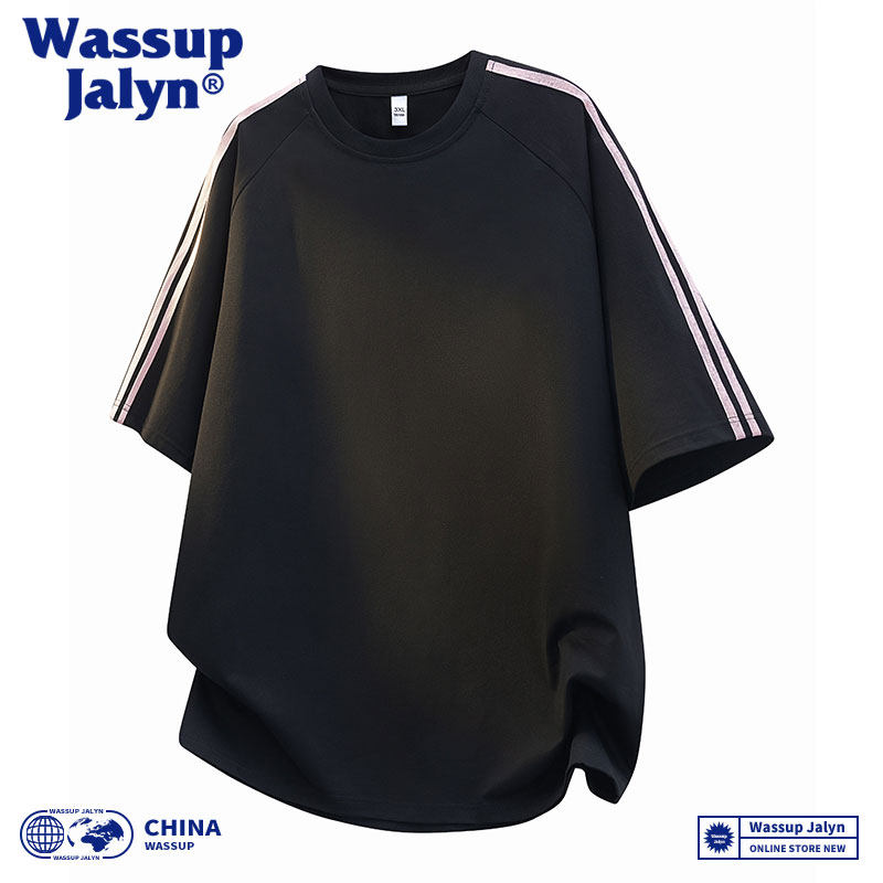 WASSUP JALYN美式复古两条杠短袖T恤男款夏季痞帅宽松休闲上衣男t