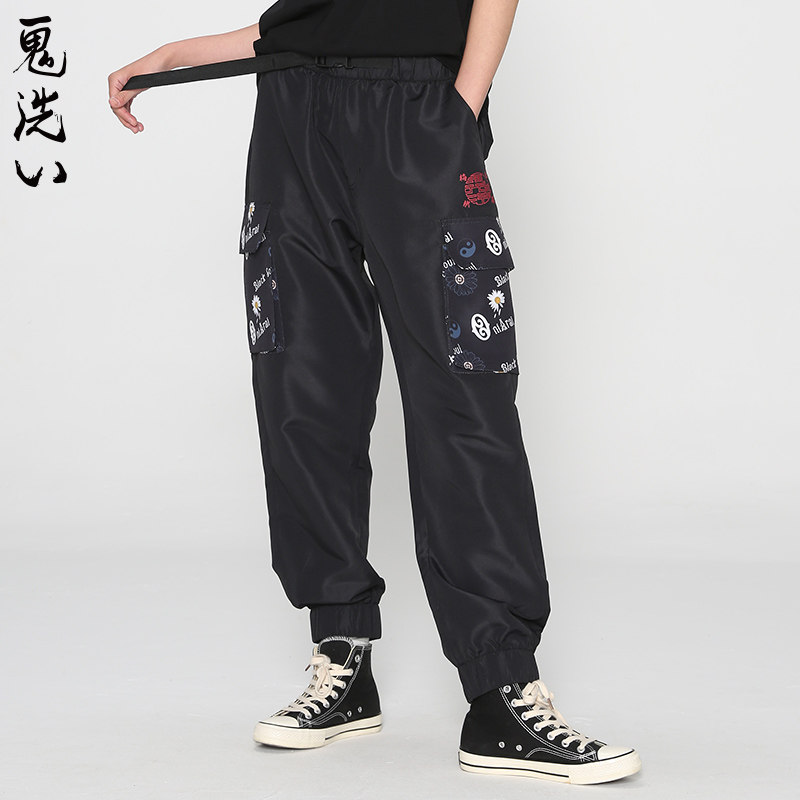 oniarai鬼洗 春夏国潮菊系列印绣花男士工装休闲长裤男 22B4413