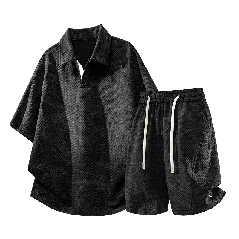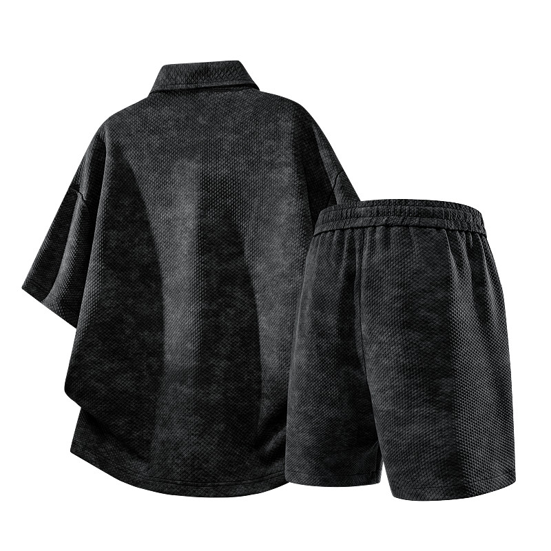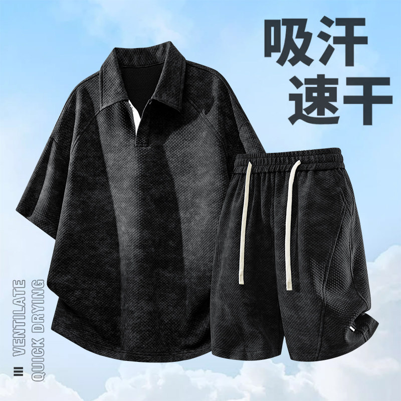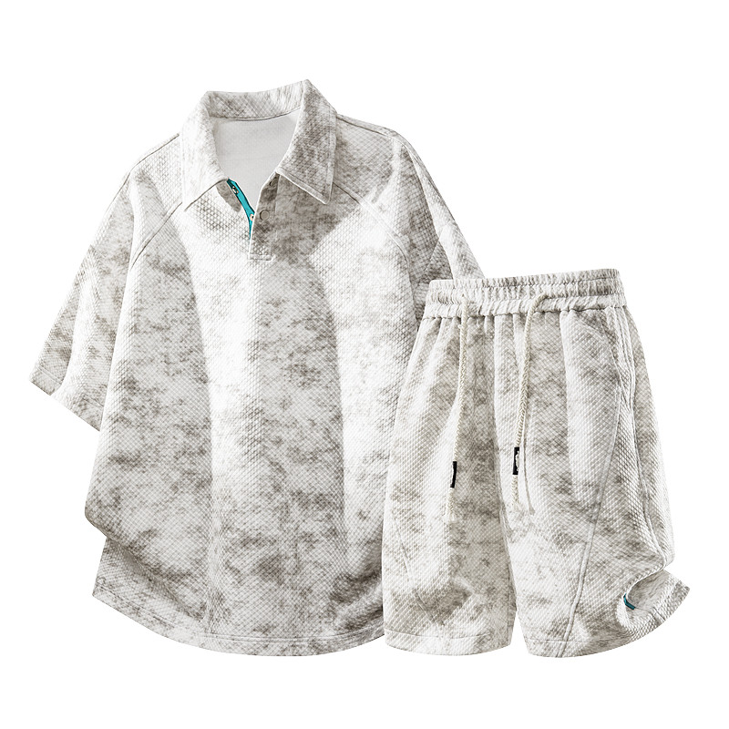 WASSUP NURAYA男士扎染短袖polo衫套装夏季宽松休闲运动两件套男