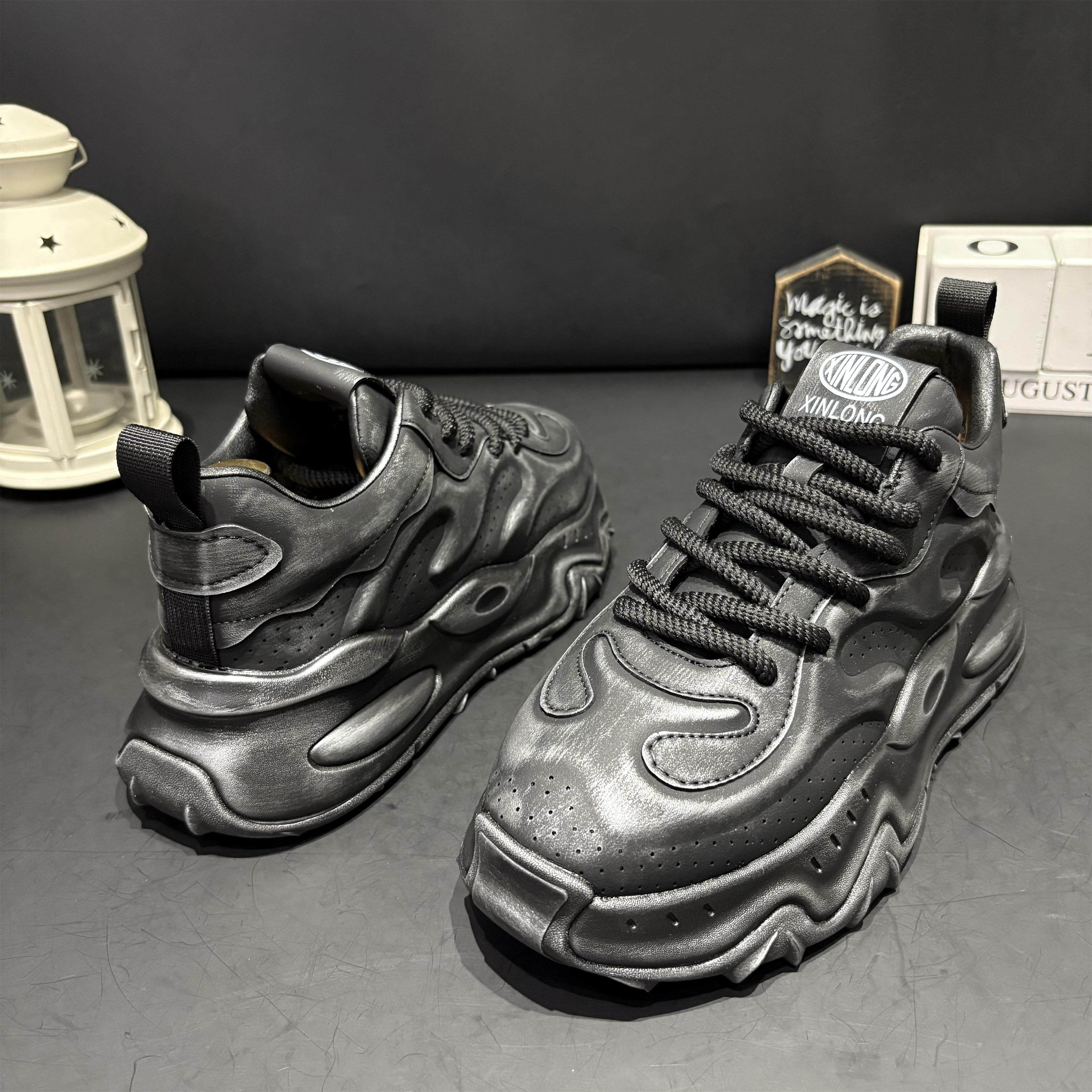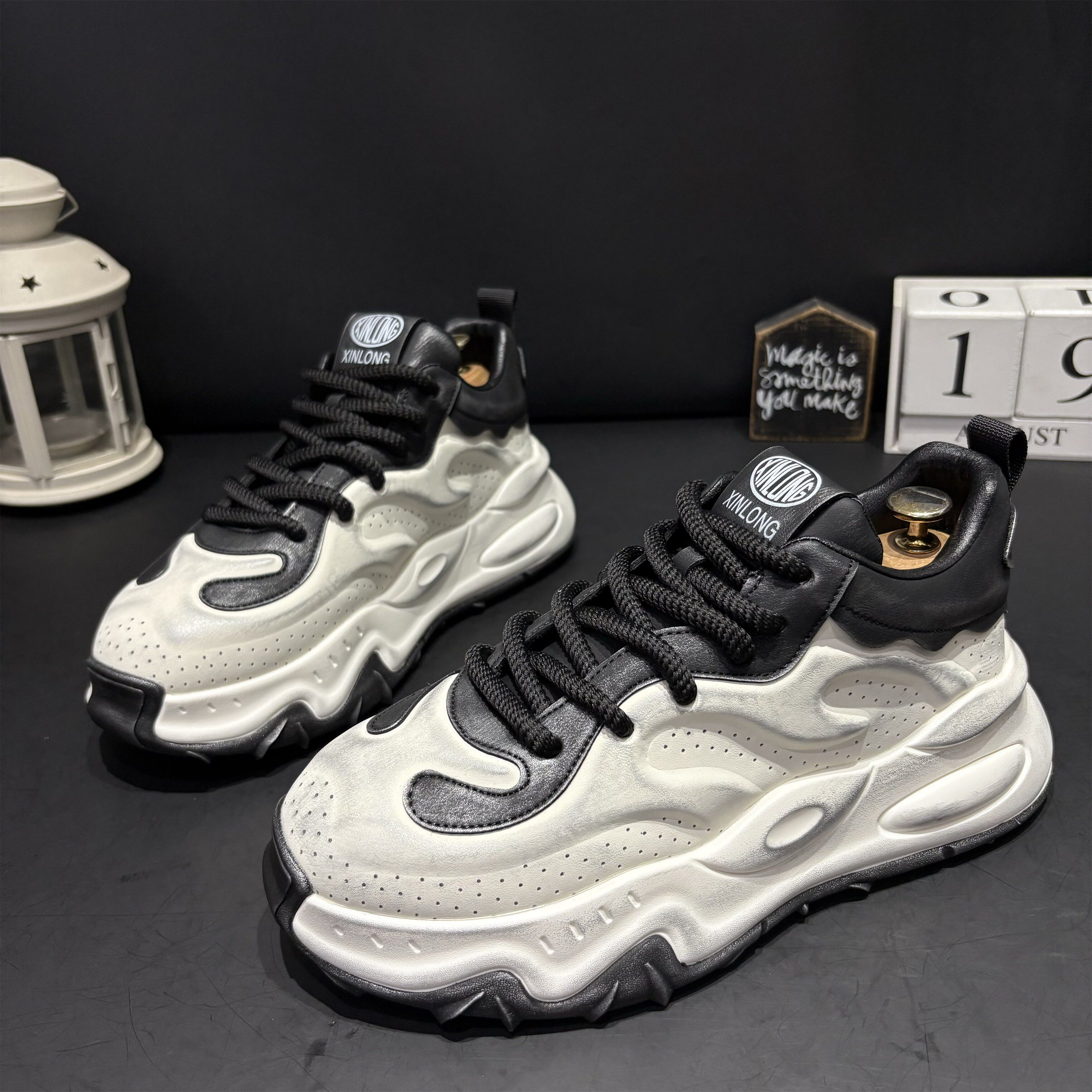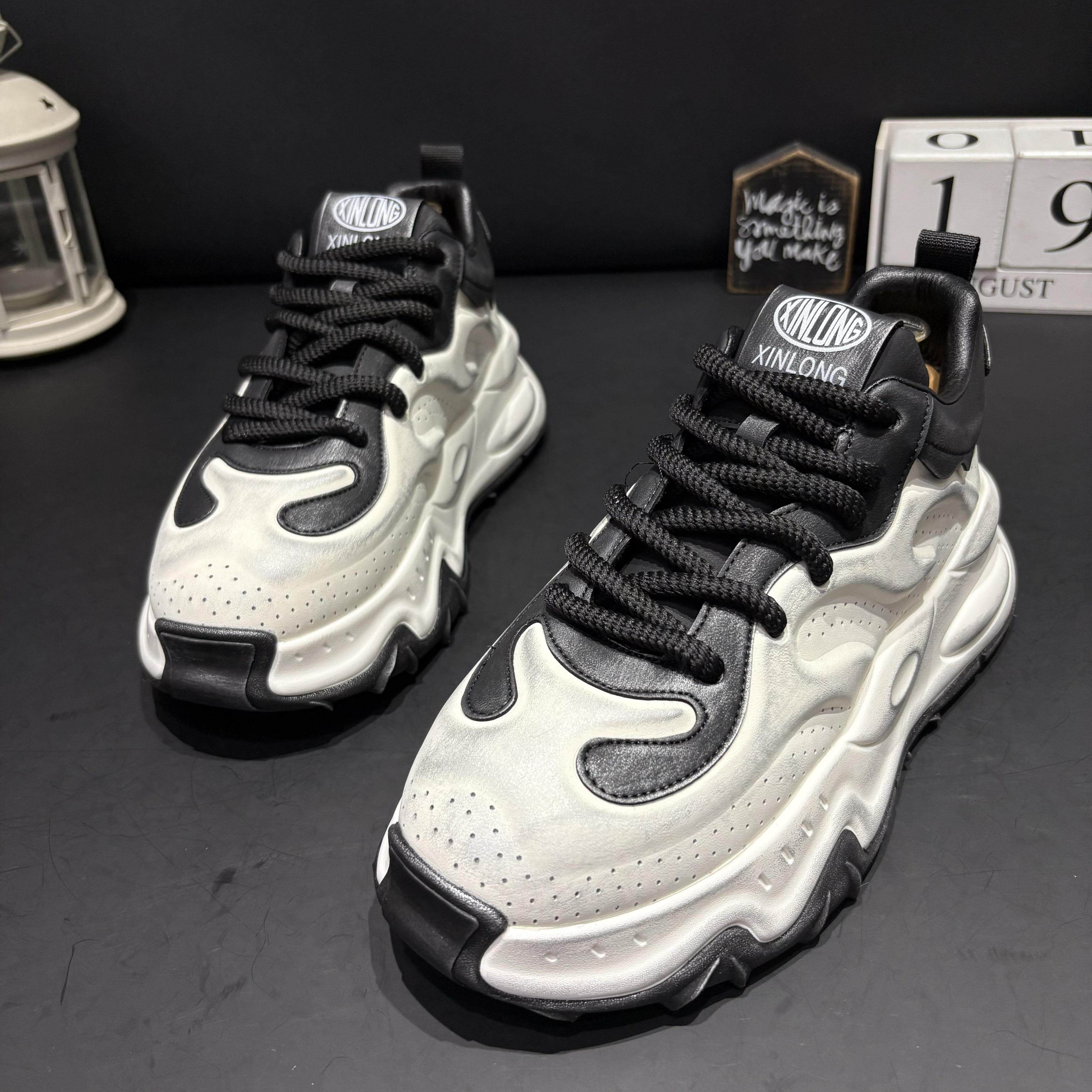 男鞋小众个性时尚厚底熊猫休闲鞋新款系带黑白超火ins同款板鞋潮