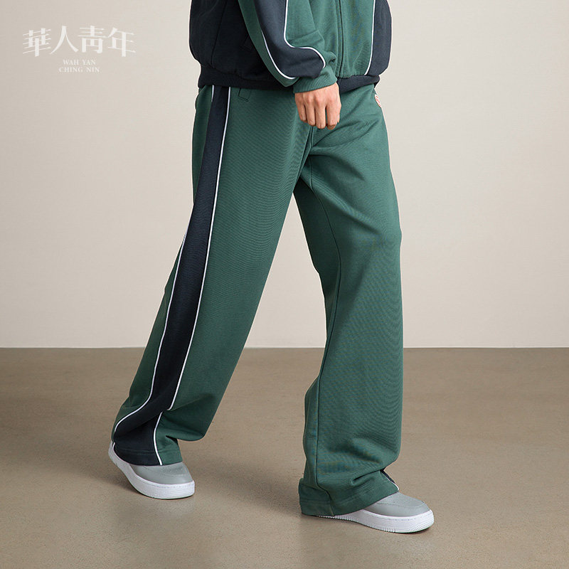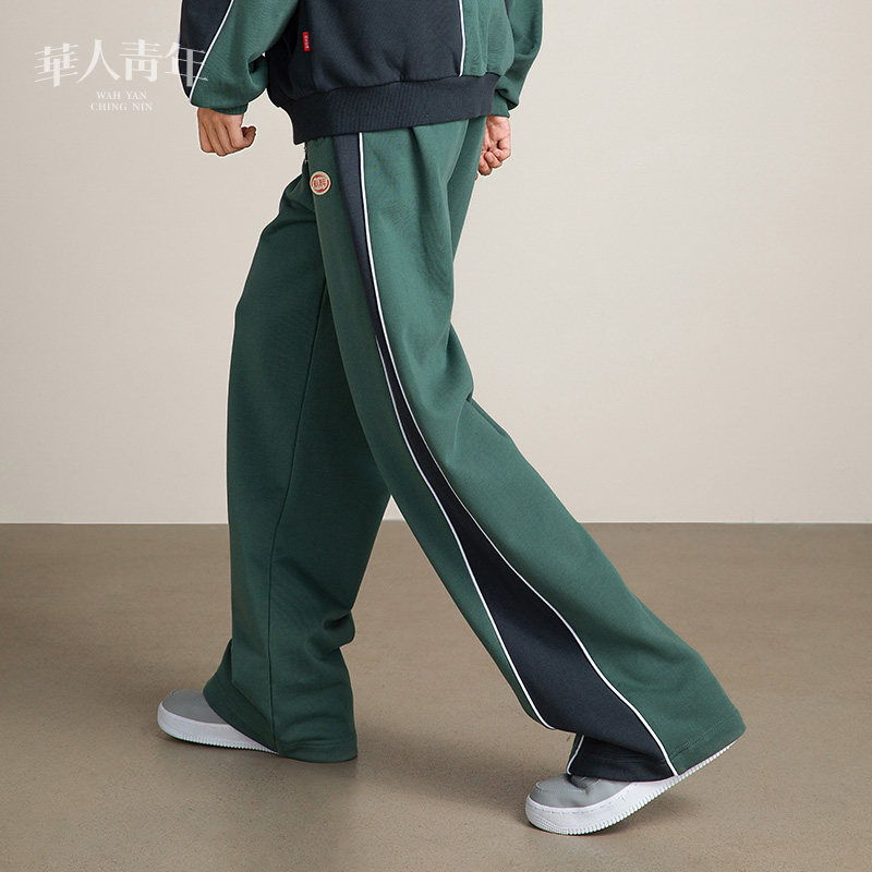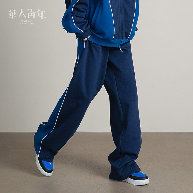 华人青年休闲运动宽松长裤国潮拼色两件套秋冬直筒裤男