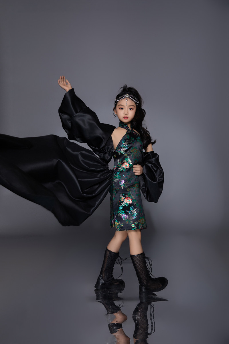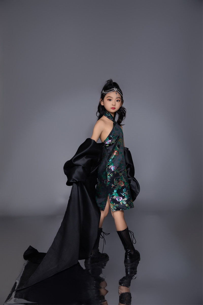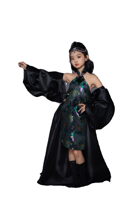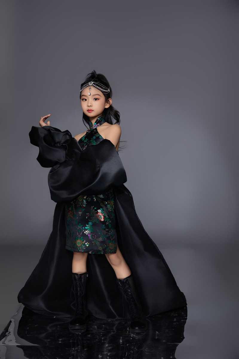 --------------------- 女童国潮旗袍拖尾中国风模特走秀童装新中式T台时装霸气黑色礼服 【原售价】280元 【现售价】180元 【推荐理由】