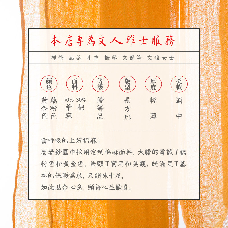--------------------- 花椿诗意禅舞棉麻围巾女夏季褶皱肌理薄纯色亚麻文艺披肩超大长款 【原售价】279元 【现售价】269元 【推荐理由】