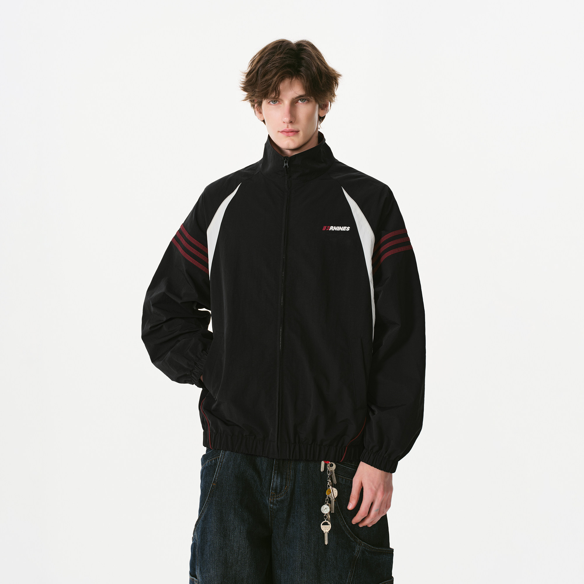 淘宝FORNINES撞色立领拼接外套男生国潮2026春季刺绣情侣装运动夹克女