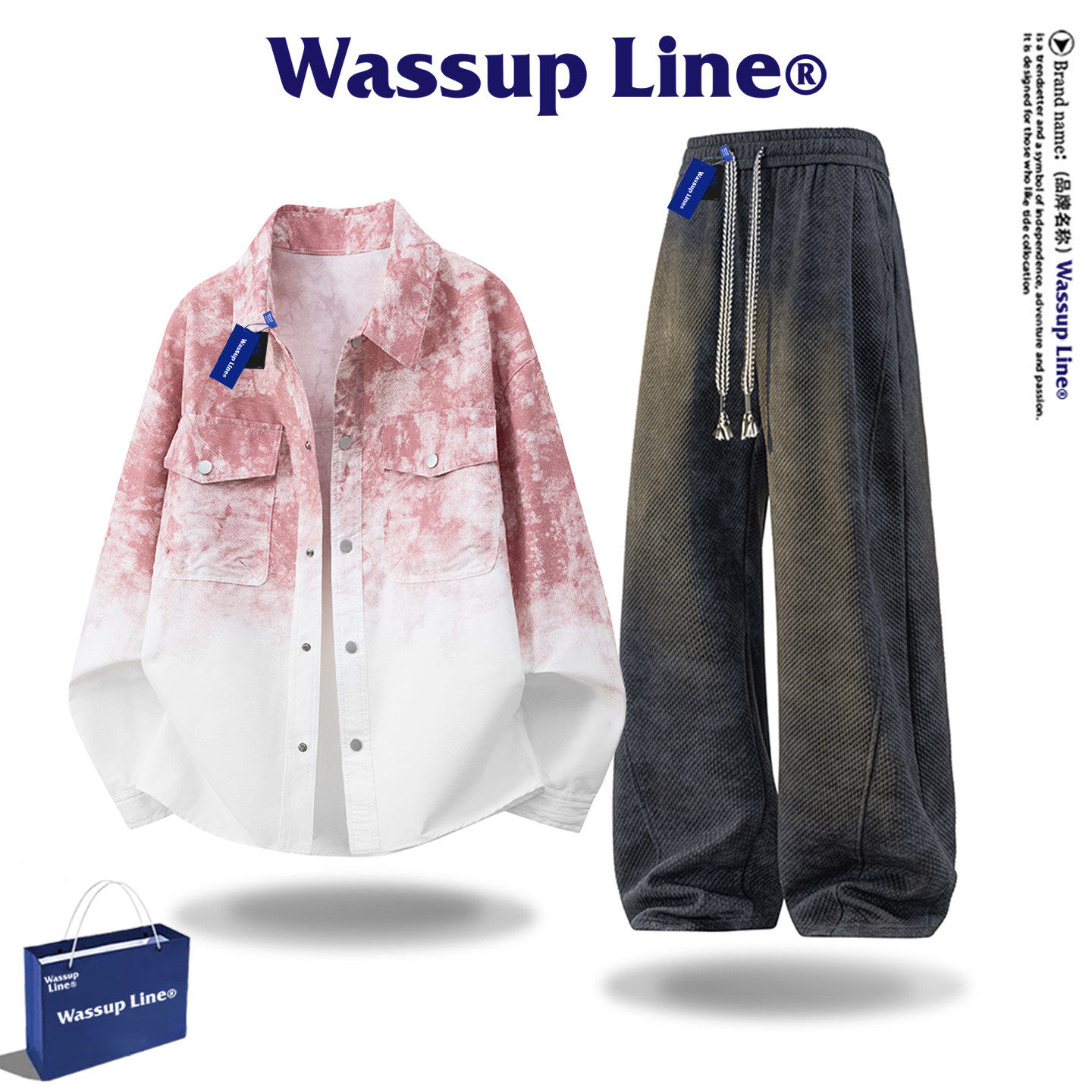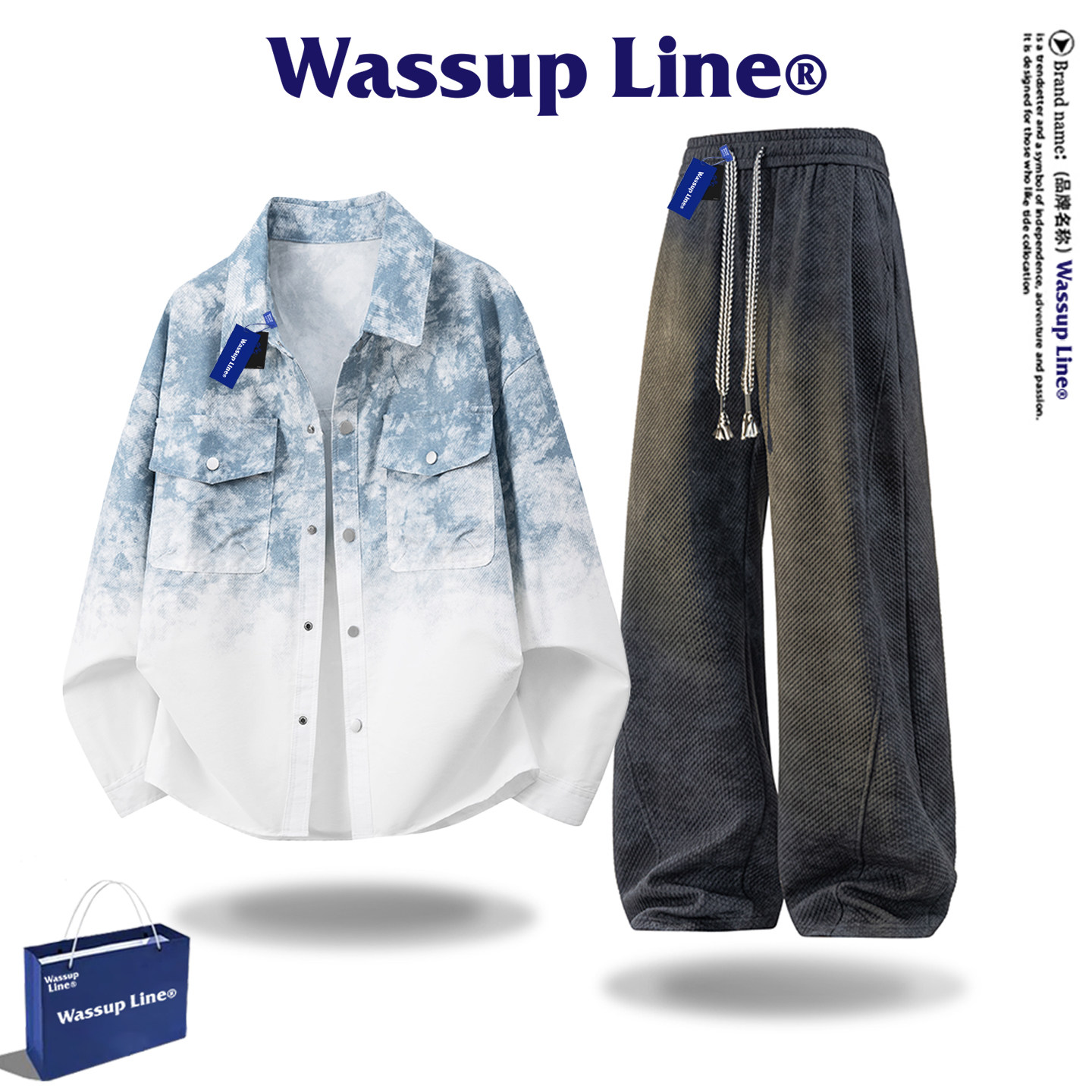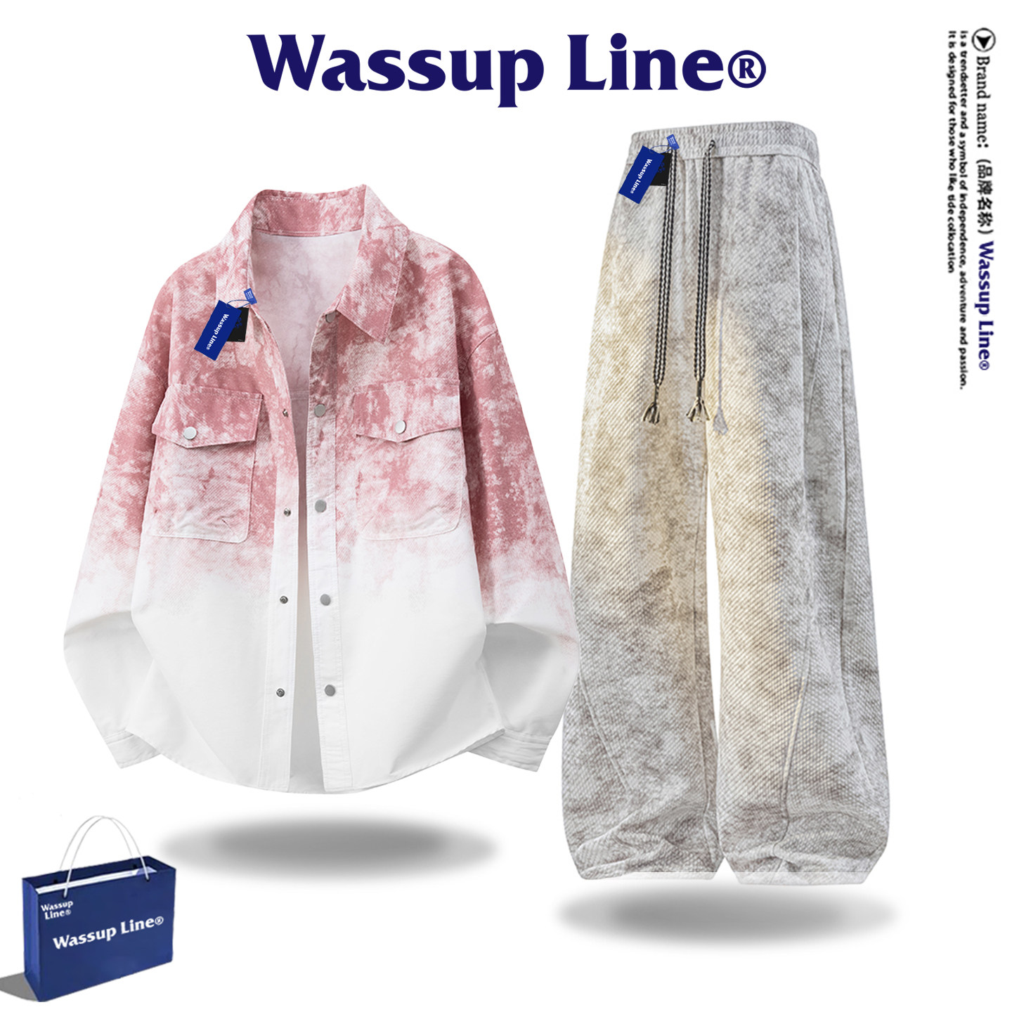 --------------------- WASSUP Line潮牌衬衫套装男款美式扎染长袖衬衣男秋季外套两件套 【原售价】398元 【现售价】88.2元 【推荐理由】
