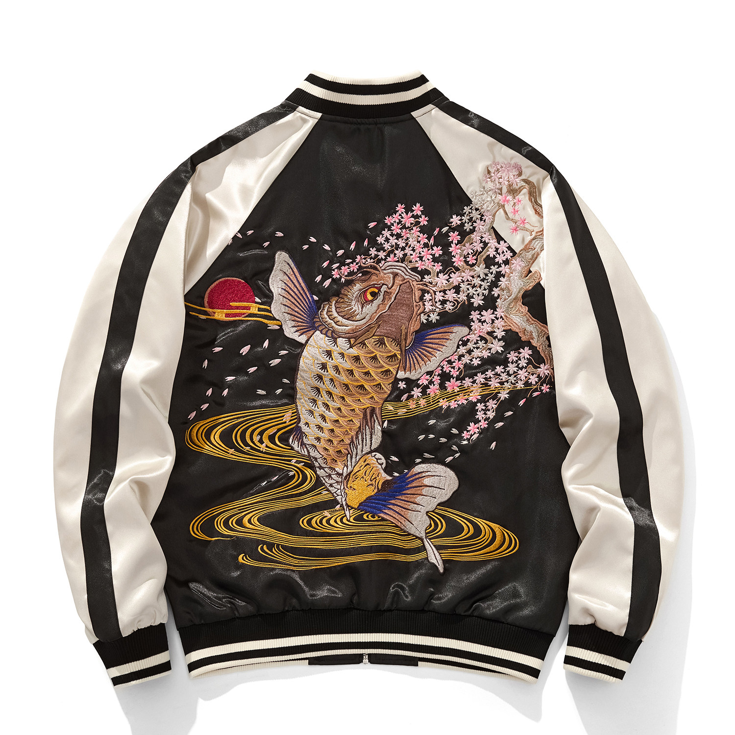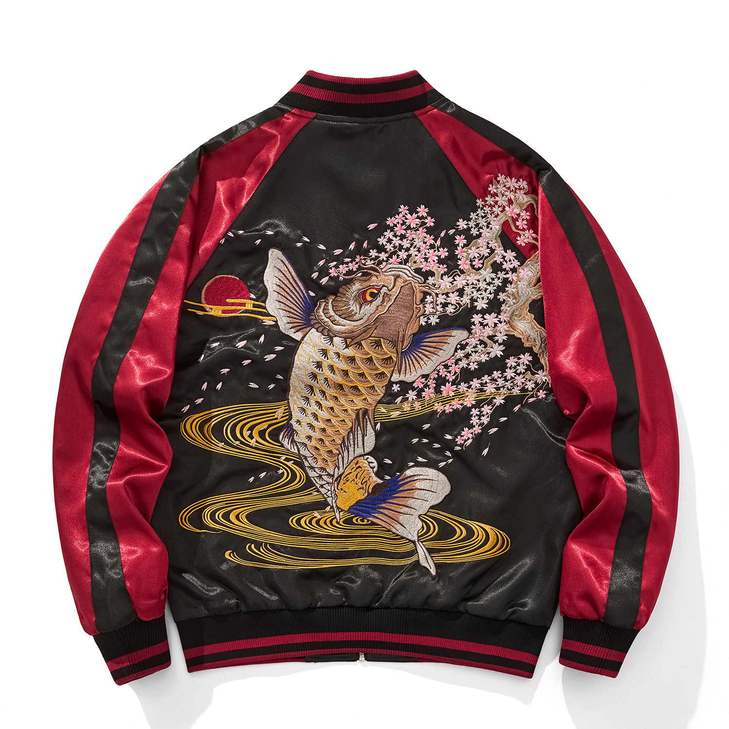 Sukajan新款锦鲤重工刺绣男女夹克外套国潮中国风上衣春秋季金鱼