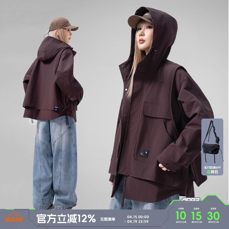 --------------------- AOGZ美式工装假两件夹克男女春季新款户外宽松设计感拼接冲锋外套 --------------------- --------------------- 【原价】279元 【券后价】209元