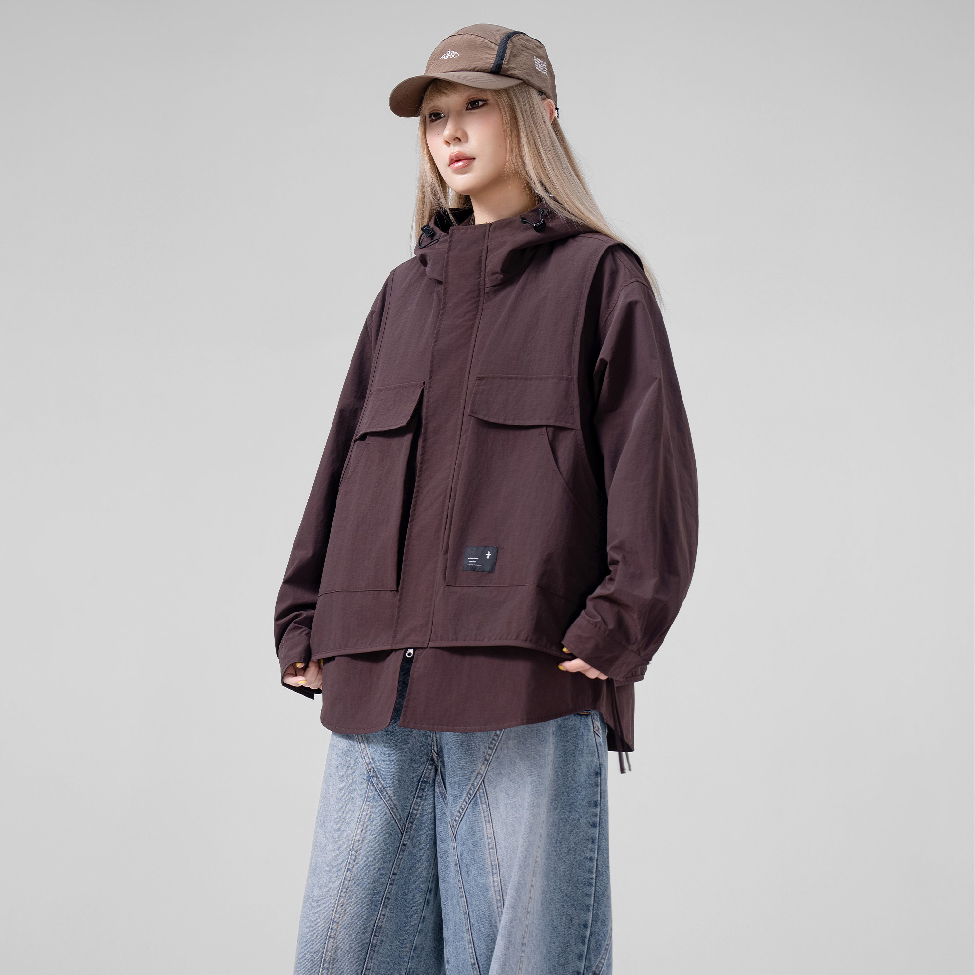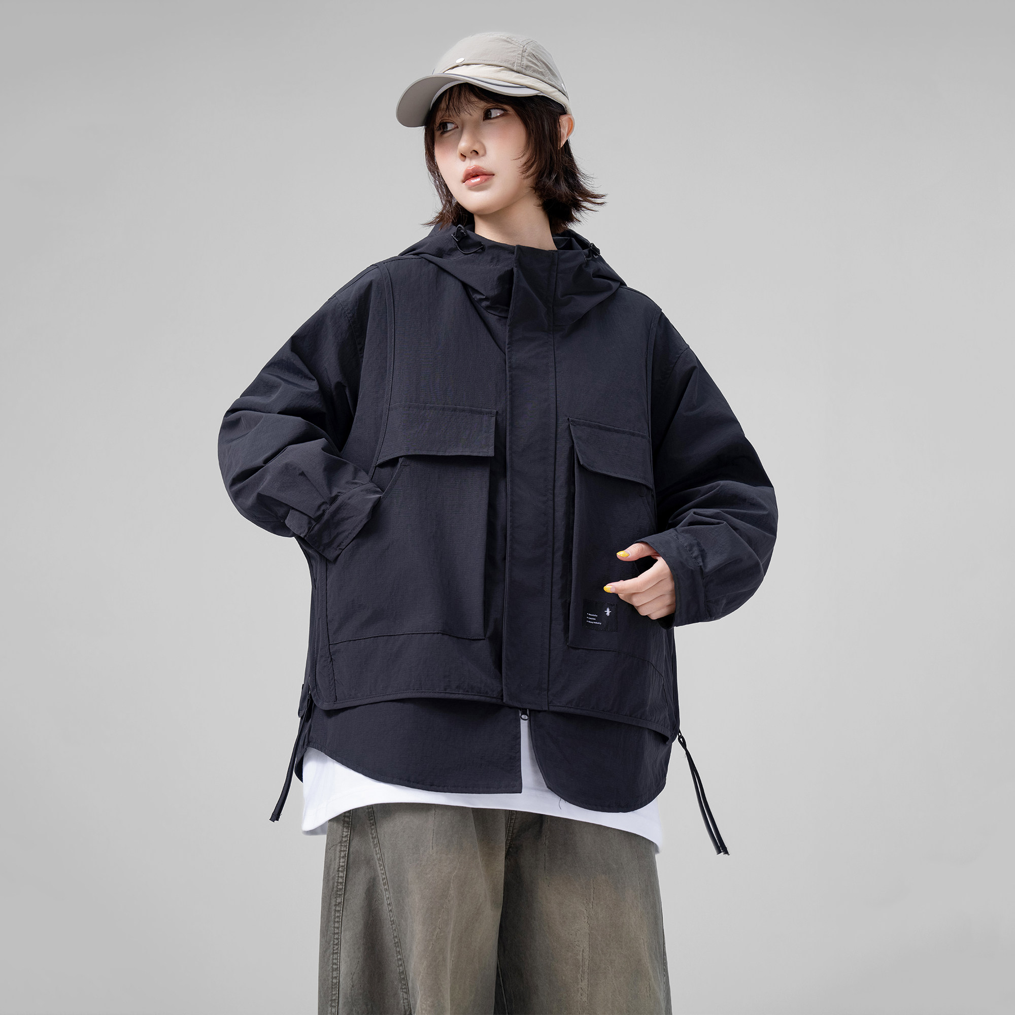 AOGZ美式工装假两件夹克男女春季新款户外宽松设计感拼接冲锋外套