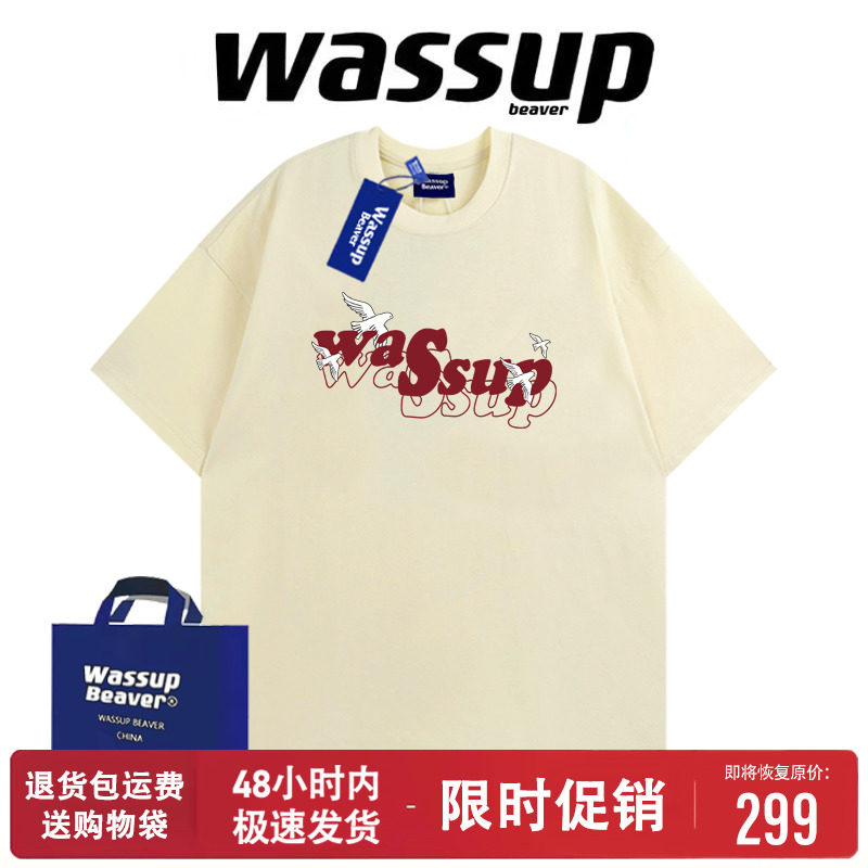 --------------------- WASSUP BEAVER美式夏季男女短袖T恤字母印花重磅宽松情侣纯棉上衣 【原售价】99元 【现售价】47.5元 【推荐理由】