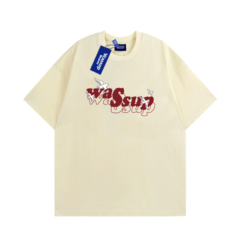 WASSUP BEAVER美式夏季男女短袖T恤字母印花重磅宽松情侣纯棉上衣