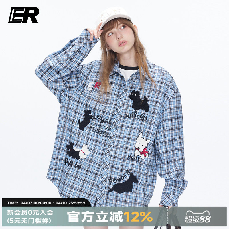 --------------------- ER可爱小狗刺绣格纹长袖衬衫2026春夏复古休闲宽松情侣装通勤外套 --------------------- --------------------- 【原价】699元 【券后价】169元