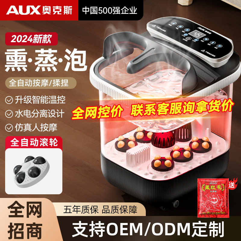 奥克斯足浴盆家用加热恒温电动熏蒸自动按摩泡脚桶过小腿足浴器