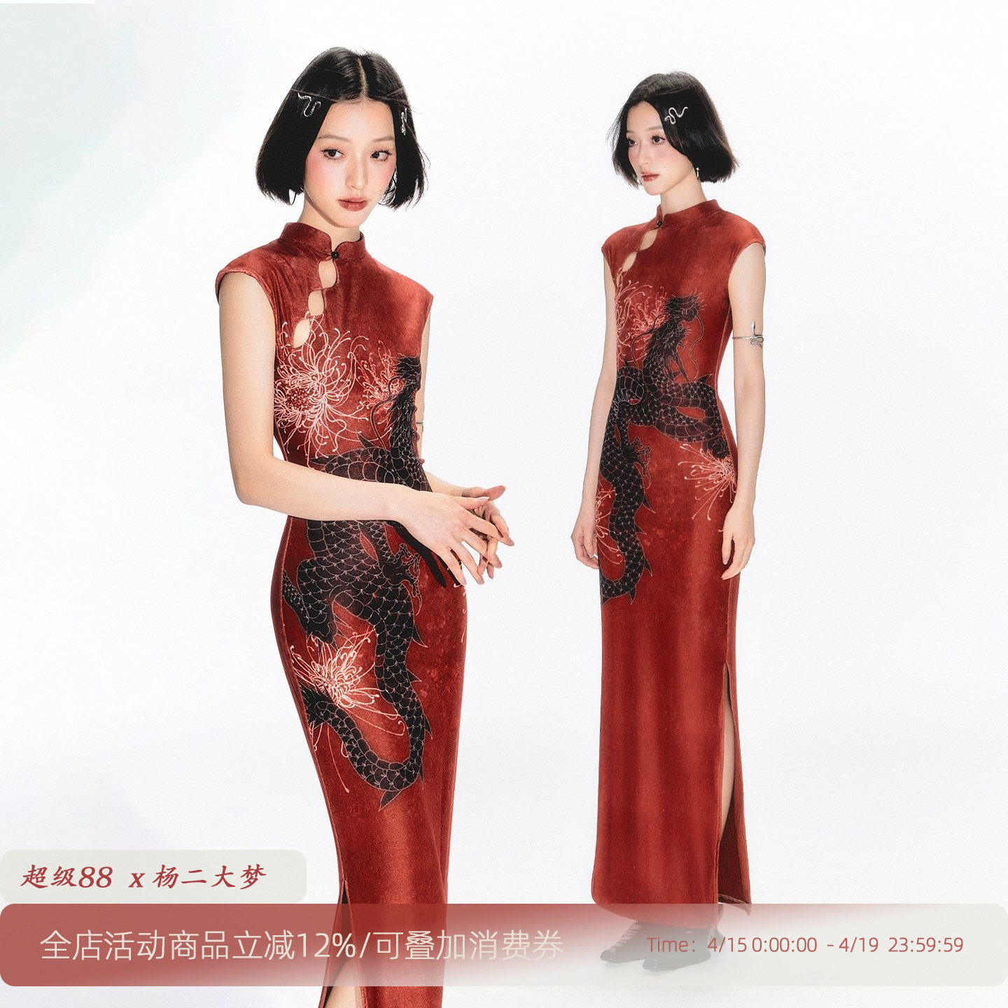 杨二大梦原创新中式龙纹印花旗袍裙女夏2026新款立领无袖连衣裙