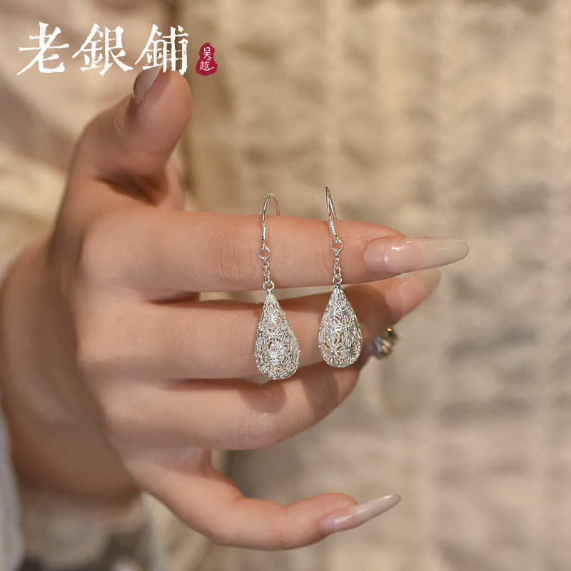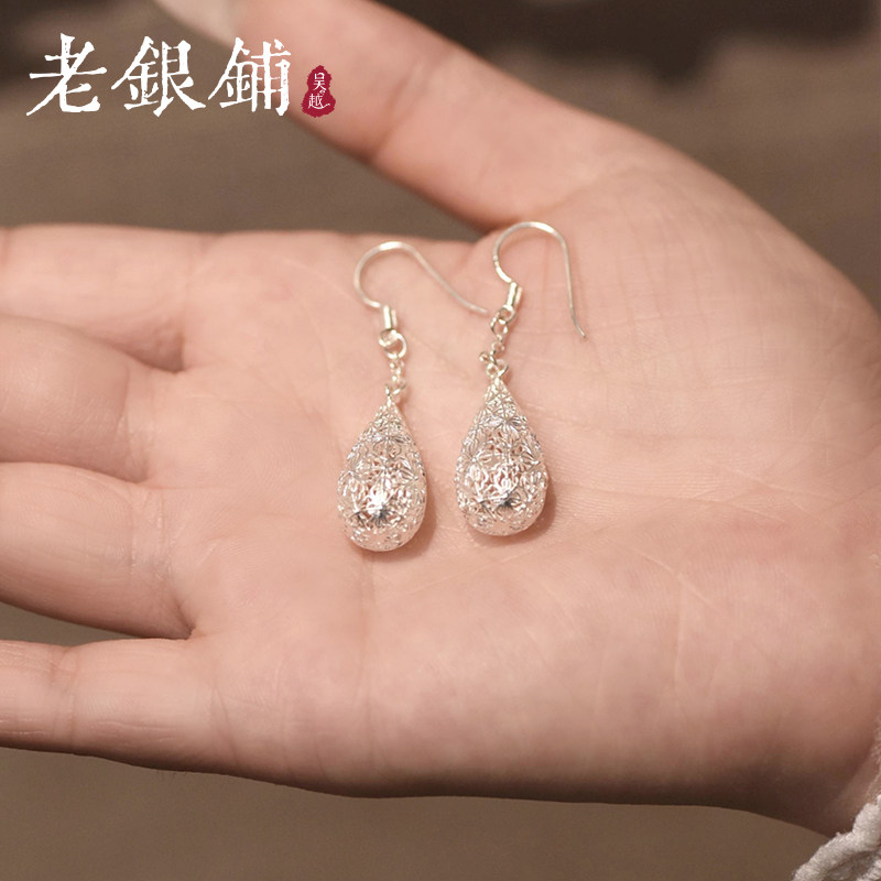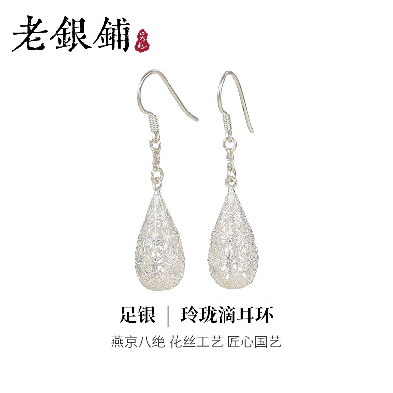 --------------------- 吴越老银铺足银玲珑滴耳环时尚百搭纯银耳环耳钉水滴耳饰送朋友 【原售价】305元 【现售价】259元 【推荐理由】