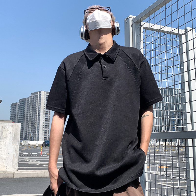 WASSUP DEION日系翻领短袖POLO衫男夏季潮牌情侣款宽松休闲半袖女