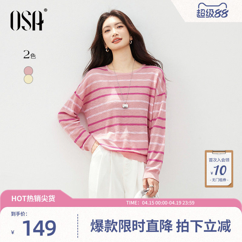 --------------------- OSA欧莎条纹长袖针织衫女2026年春季新款轻薄宽松显瘦罩衫T恤上衣 【原售价】219元 【现售价】149元 【推荐理由】