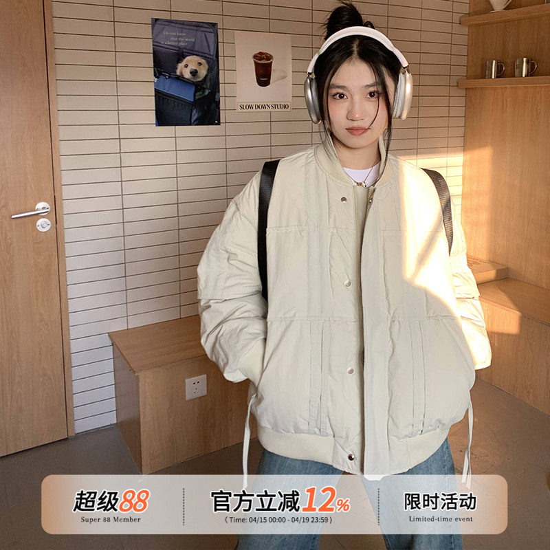 橘子树在哪儿设计感中性羽绒服外套女秋冬宽松国潮百搭飞行服夹克